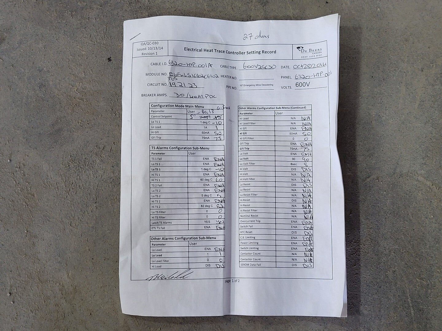 Cable type: 600V2SC30