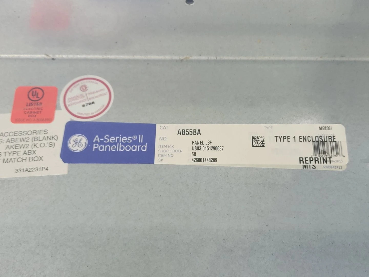 A-Series II Panelboard AB55BA Type 1 Enclosure