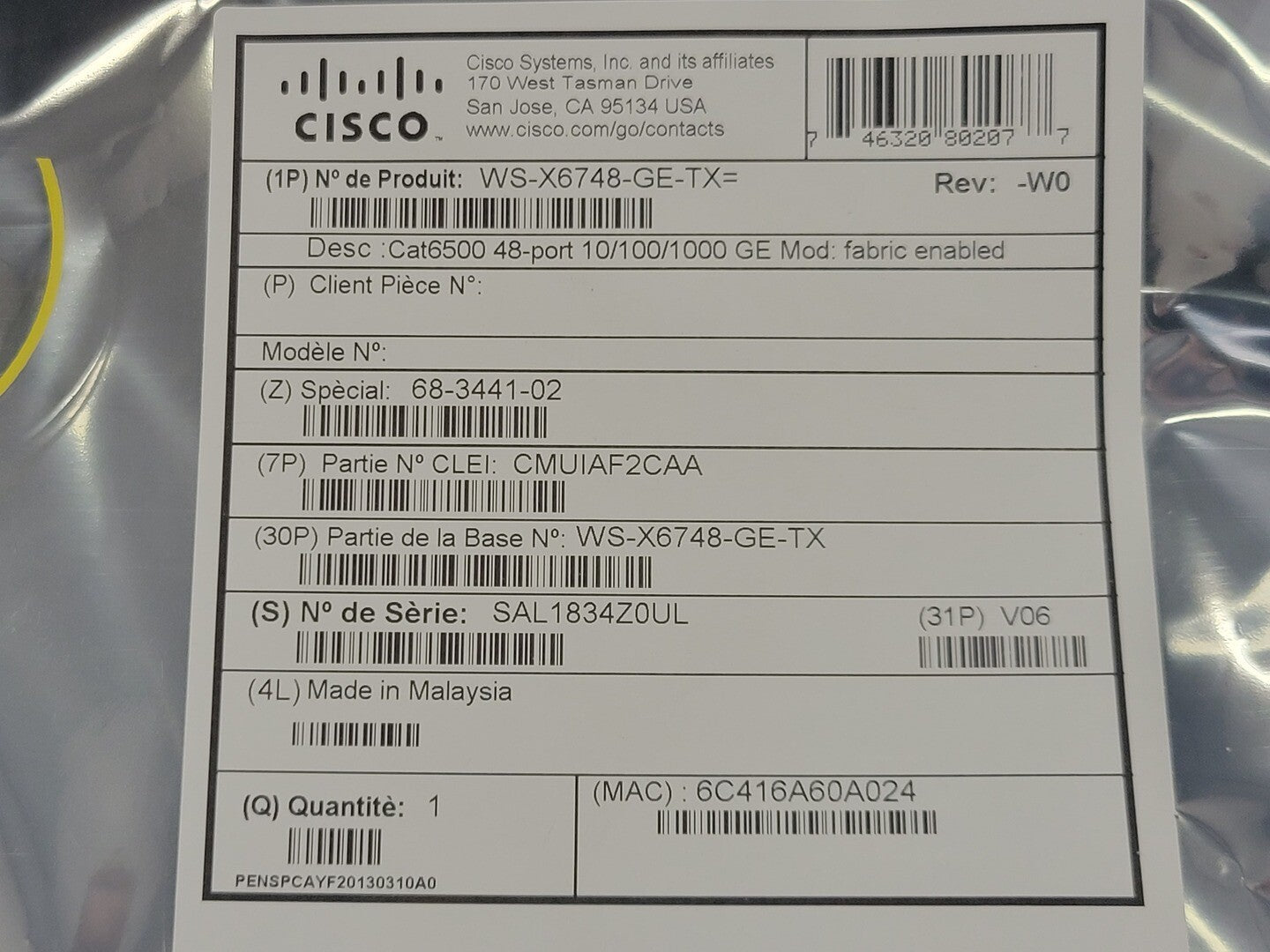 Model WS-X6748-GE-TX