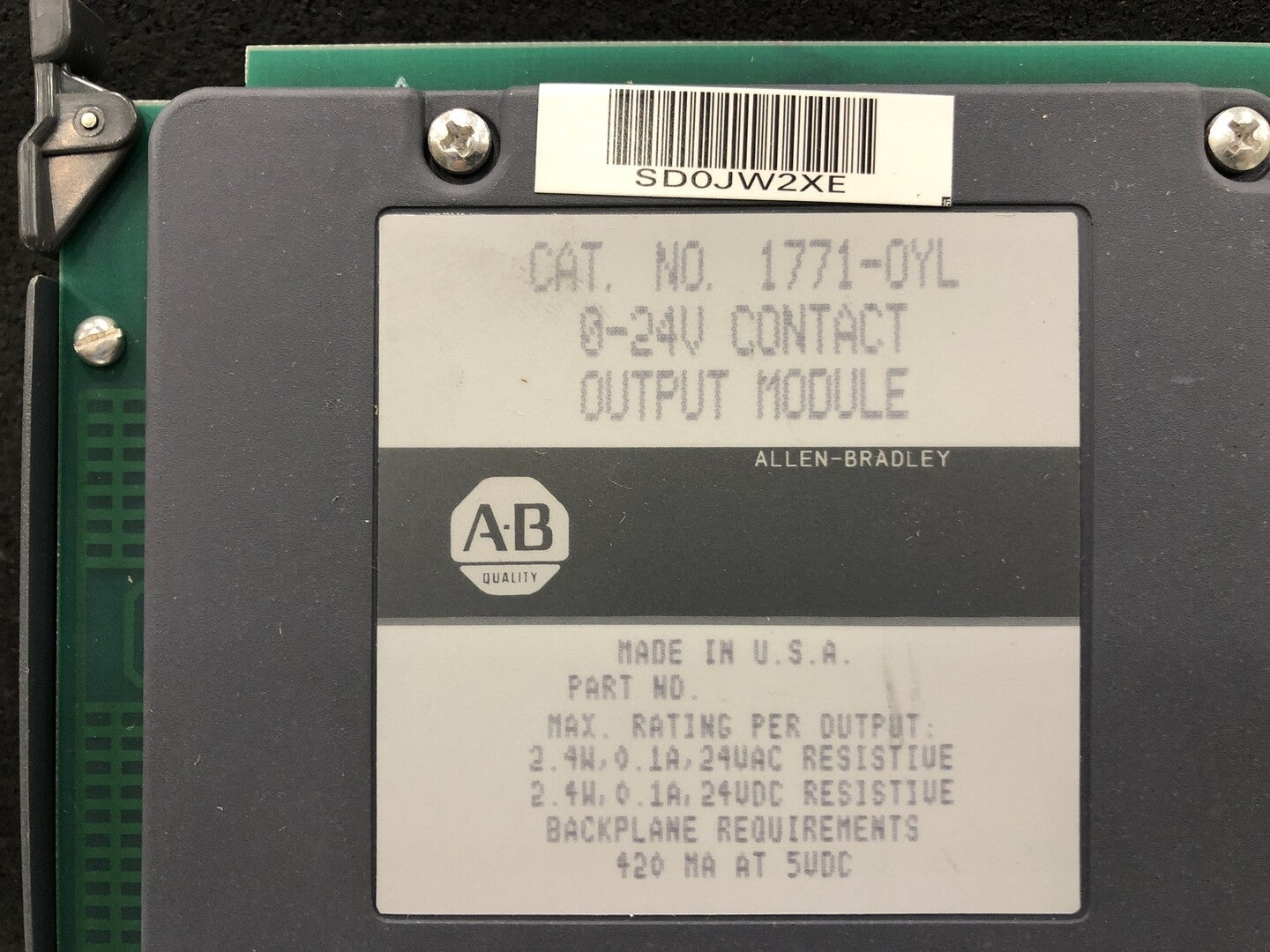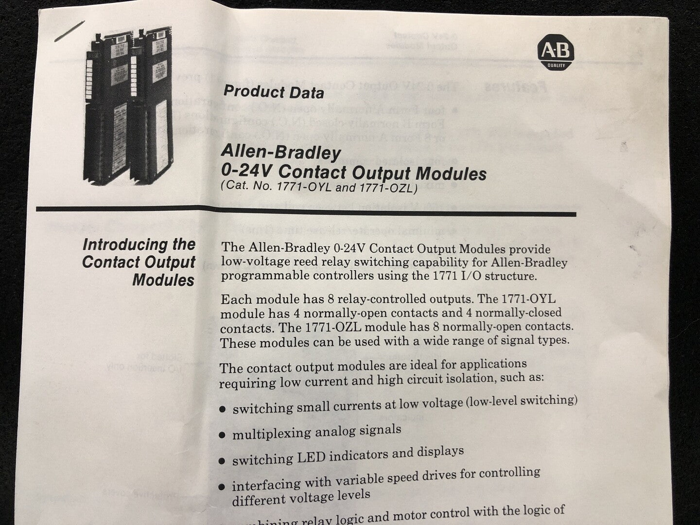 The Allen-Bradley 0-24 V Contact Output Modules provide low voltage reed relay switching capability for Allen-Bradley programmable controllers using the 1771 I/O.