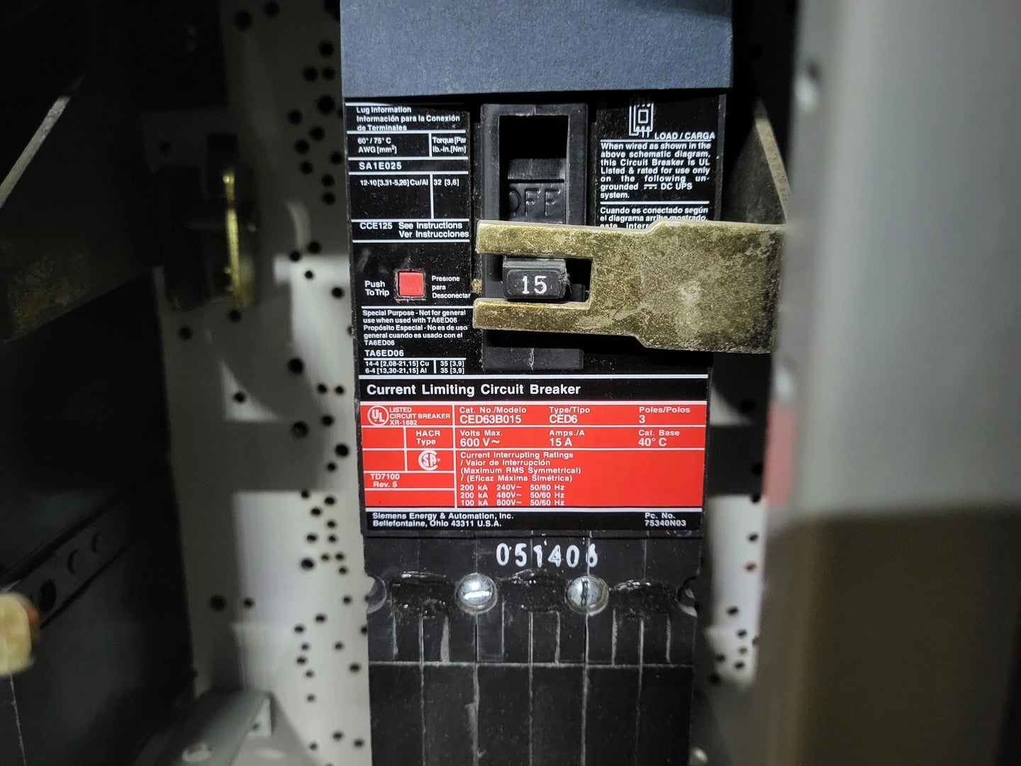 • Short Circuit Rating: 50K Amperes RMS Symmetrical, 600V Max. w/ CED6 15a