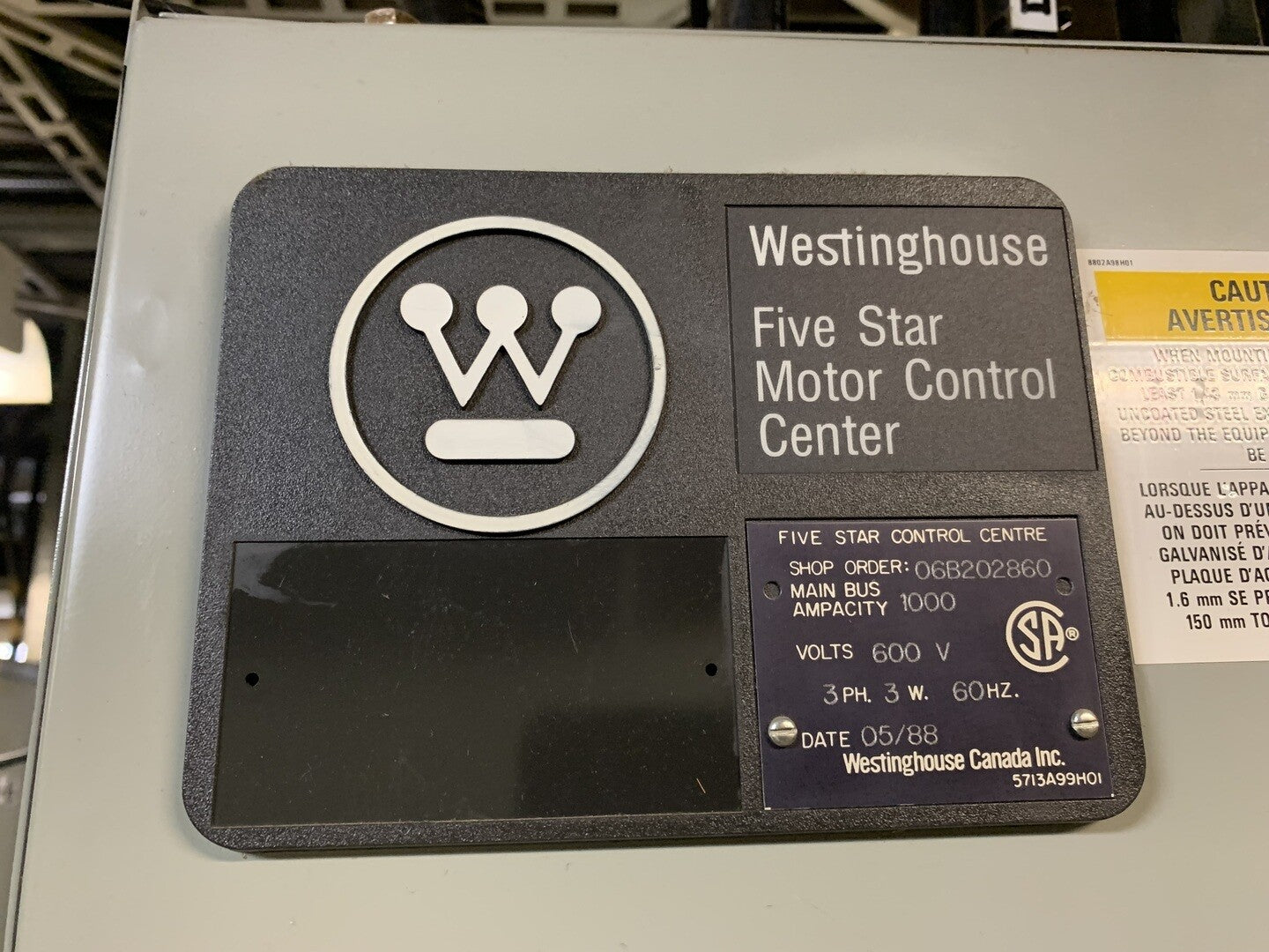 Bus Rating: 600V Max., 3-Ph, 3-W 1000A, 60hz