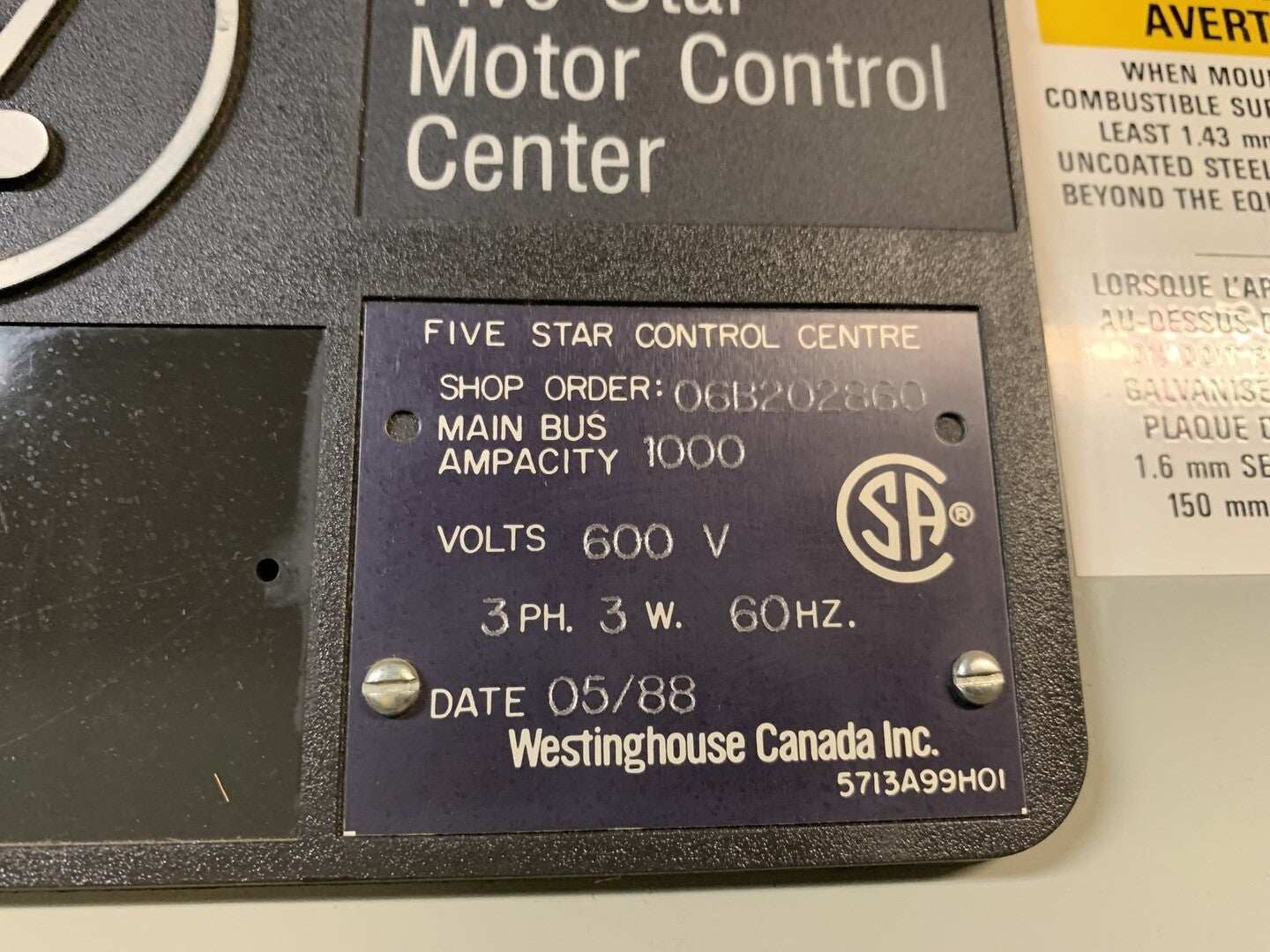 Five Star Double-Sided Motor Control Center (MCC), 600V Max., 1000A, 25 Buckets