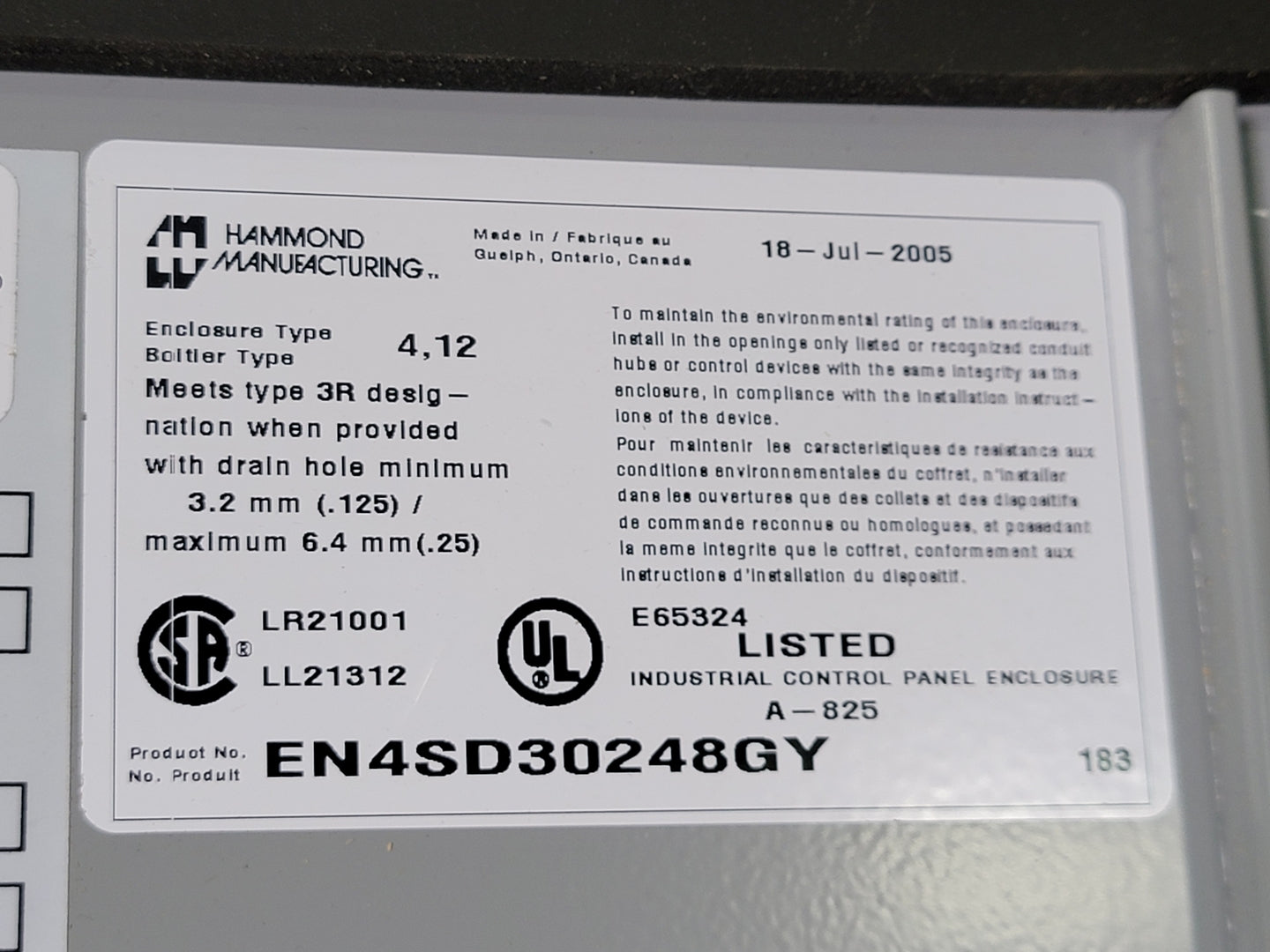 Industrial Control Panel EN4SD30248GY for Camera, Electrical Component Inside