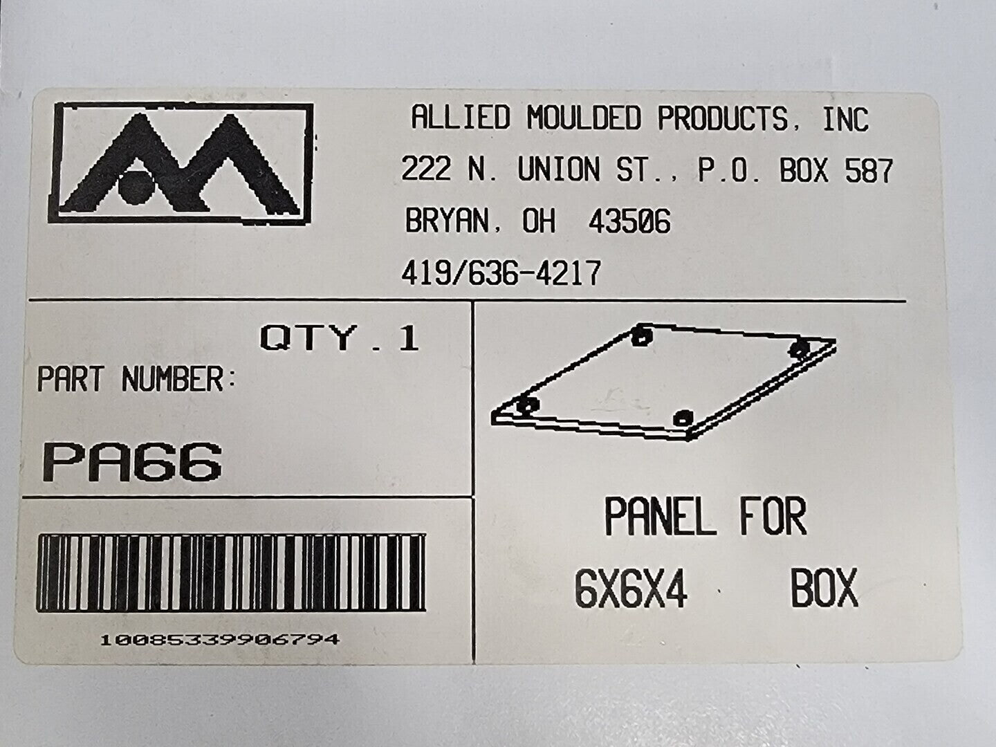 Panel PA66 for 6x6x4 Box
