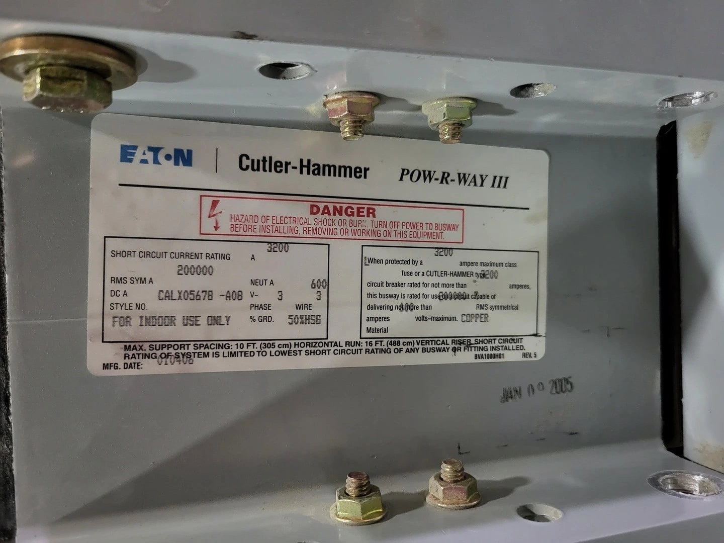 Short Circuit Current Rating: 3200 Amp