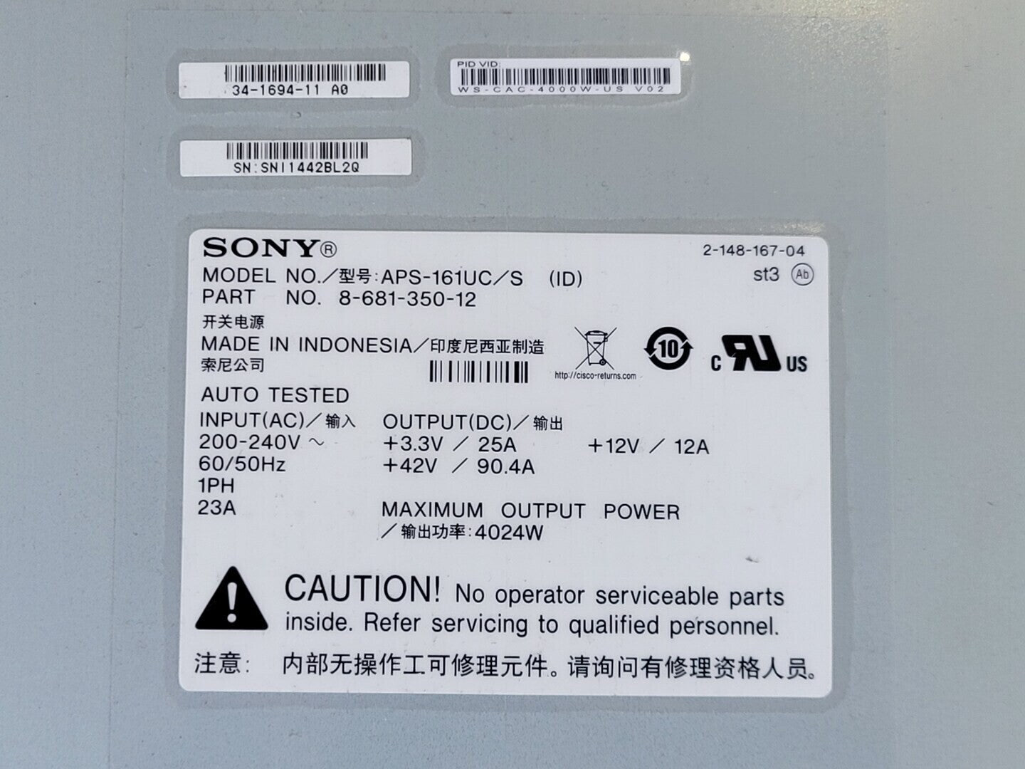 23 Amp 200/240 Volts Power Supply APS-161 UC/S 8-681-350-12