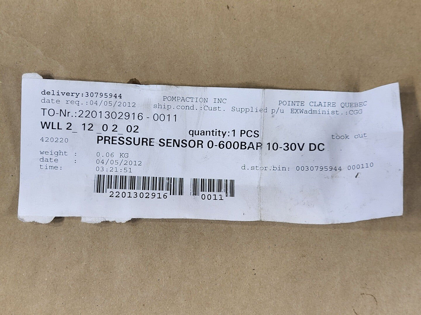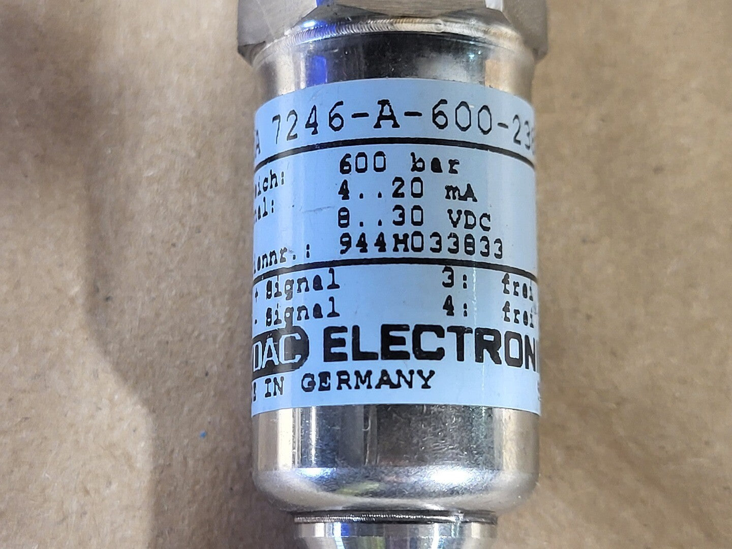 Pressure Sensor 0-600 Bar, 10-30 VDC, 7246-A-600-238 (Box of 4)
