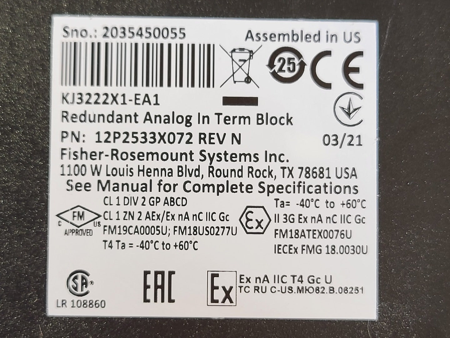 Redundant Analog Input Terminal Block KJ3222X1-EA1