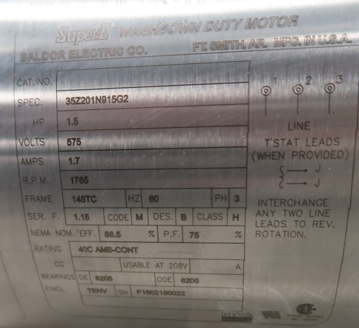 1.5 hp, 575 volts, 1765 rpm, 145TC Electric Motor 35Z201N915G2