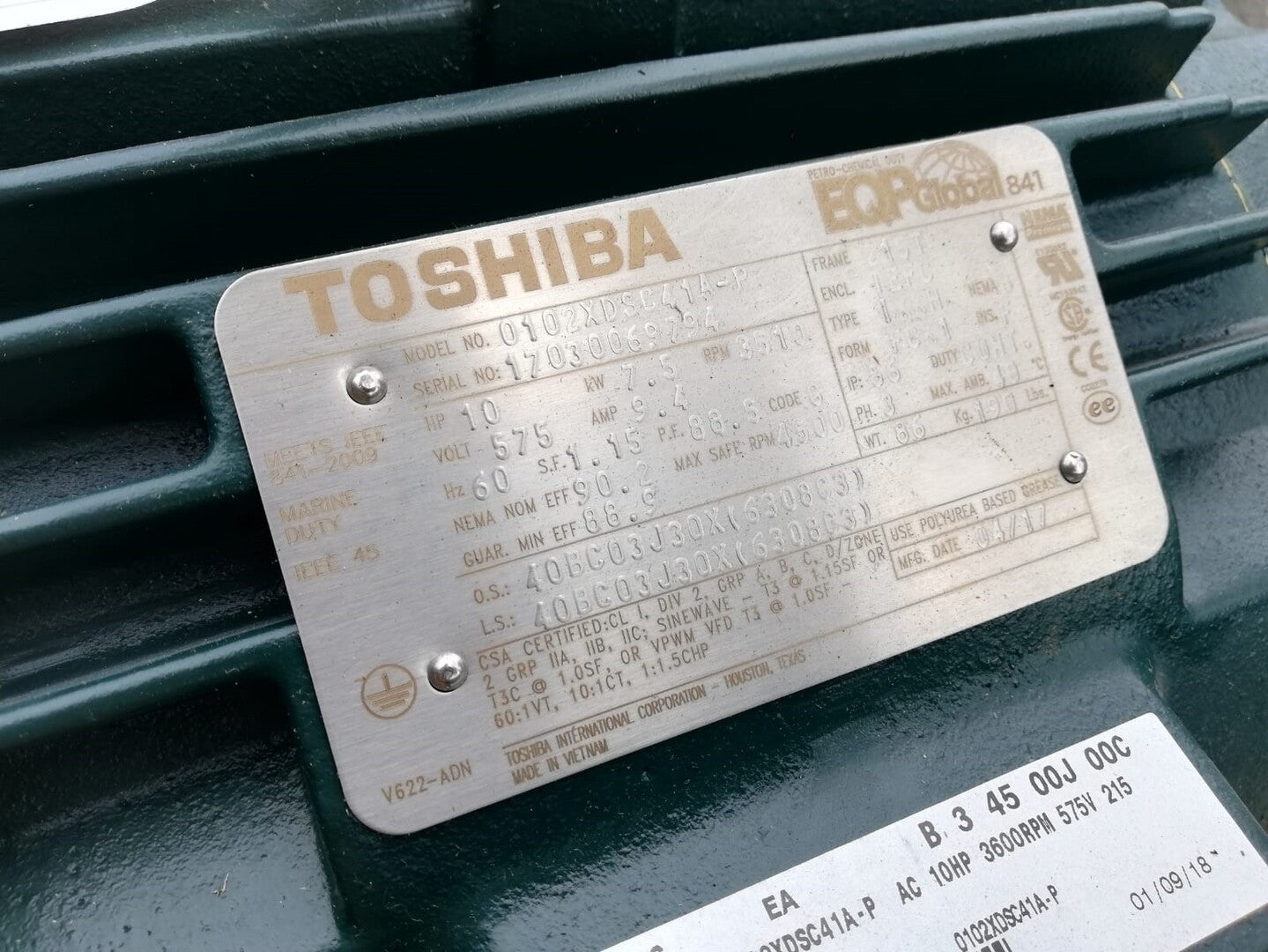 10 hp, 575 volts, 3510 rpm, 215T Electric Motor