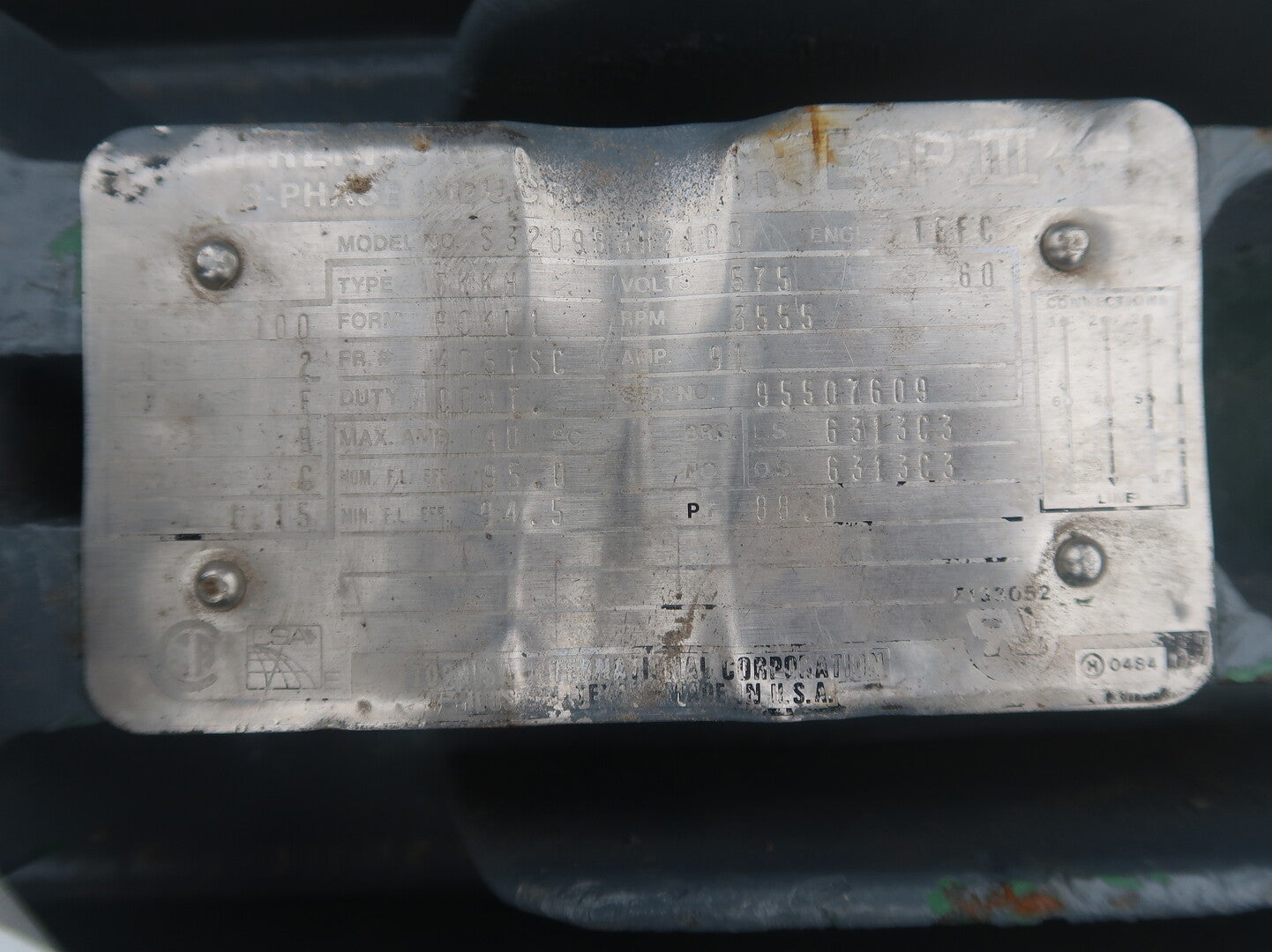 100 hp, 575 volts, 3555 rpm, 405TSC Electric Motor S32098382100