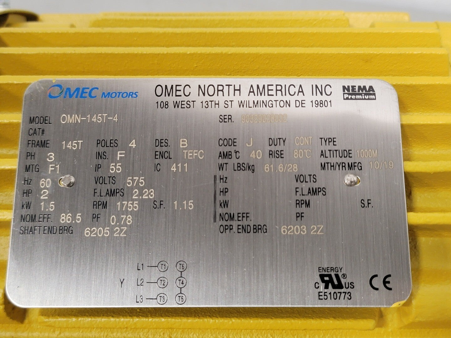 2 hp, 575 volts, 1755 rpm, 145T Electric Motor OMN-145T-4