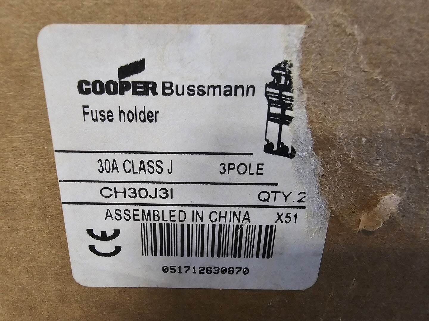 30 Amps, Class J Fuse Holder CH30J3I (Box of 2 pcs)