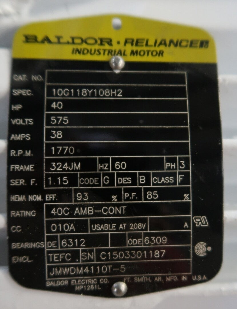 40 hp, 575 volts, 1770 rpm, 324JM Electric Motor EM4110T