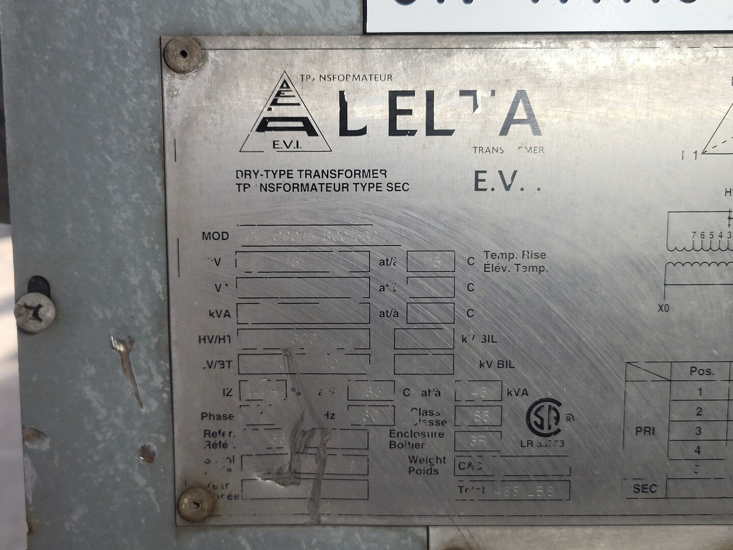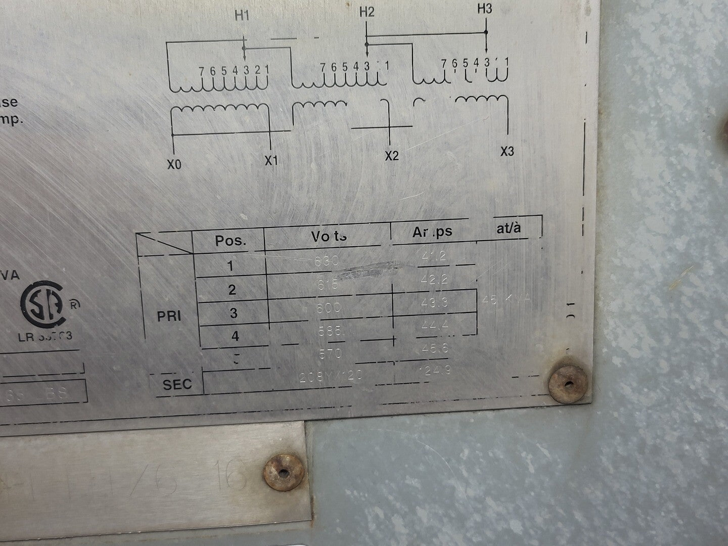 45 kVA Transformer 600 pri. volts, 208Y/120 sec. volts CETC0045S001532