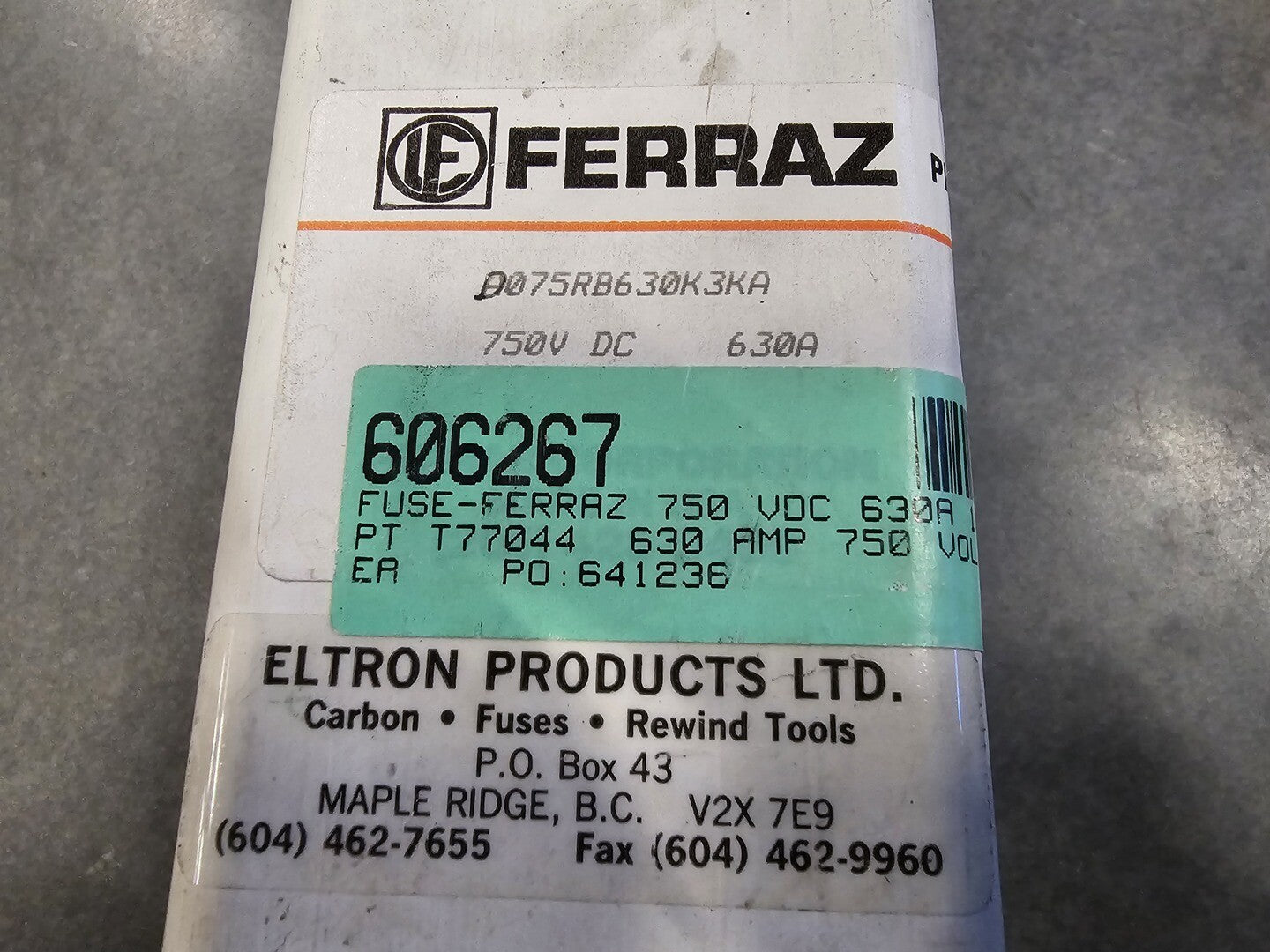 630 Amp 750 VDC Fuse D075RB630K3KA