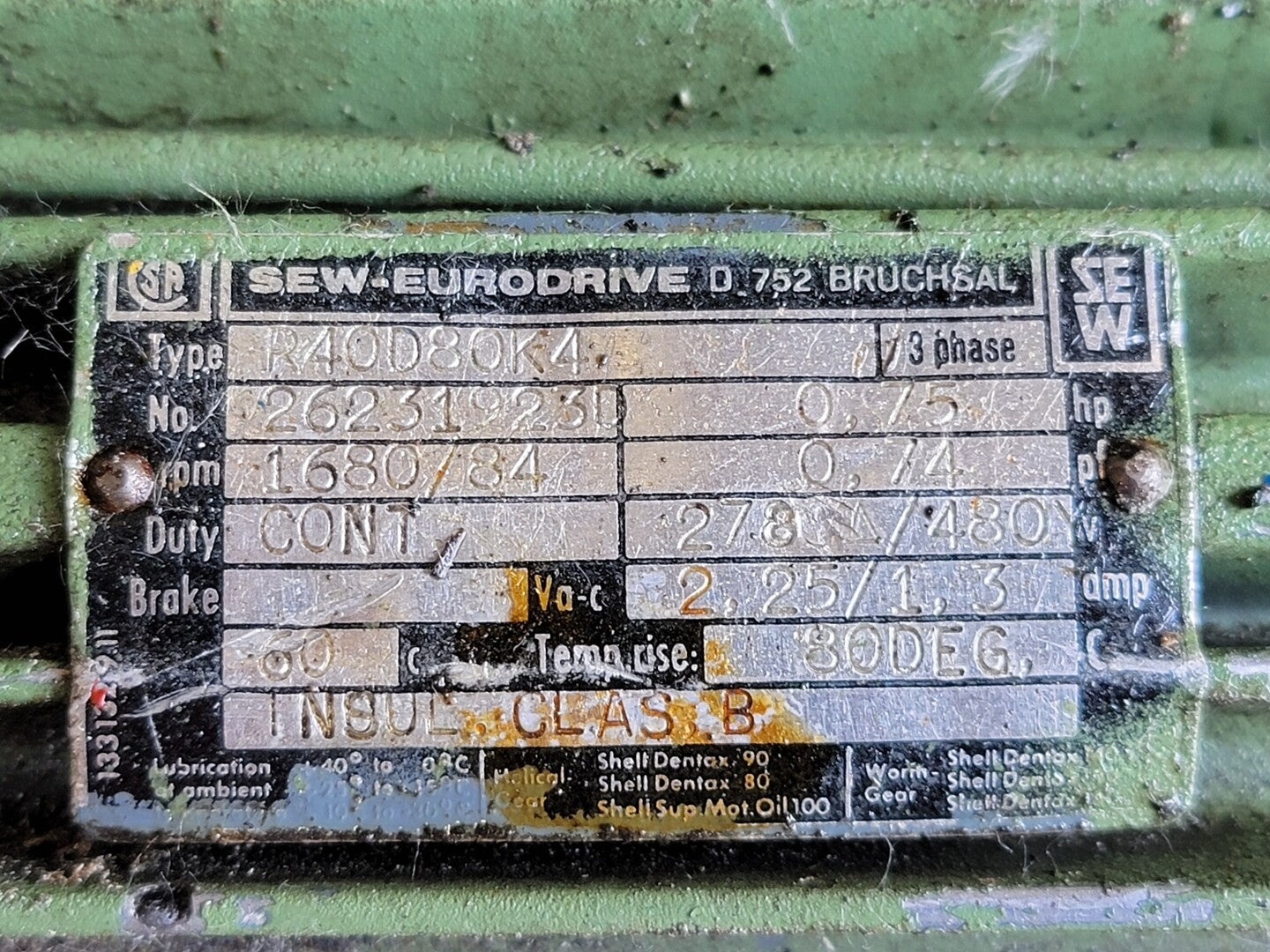 2.25/1.3:1 Ratio Gearbox R40D80K4 w/ 0.75 hp Electric Motor