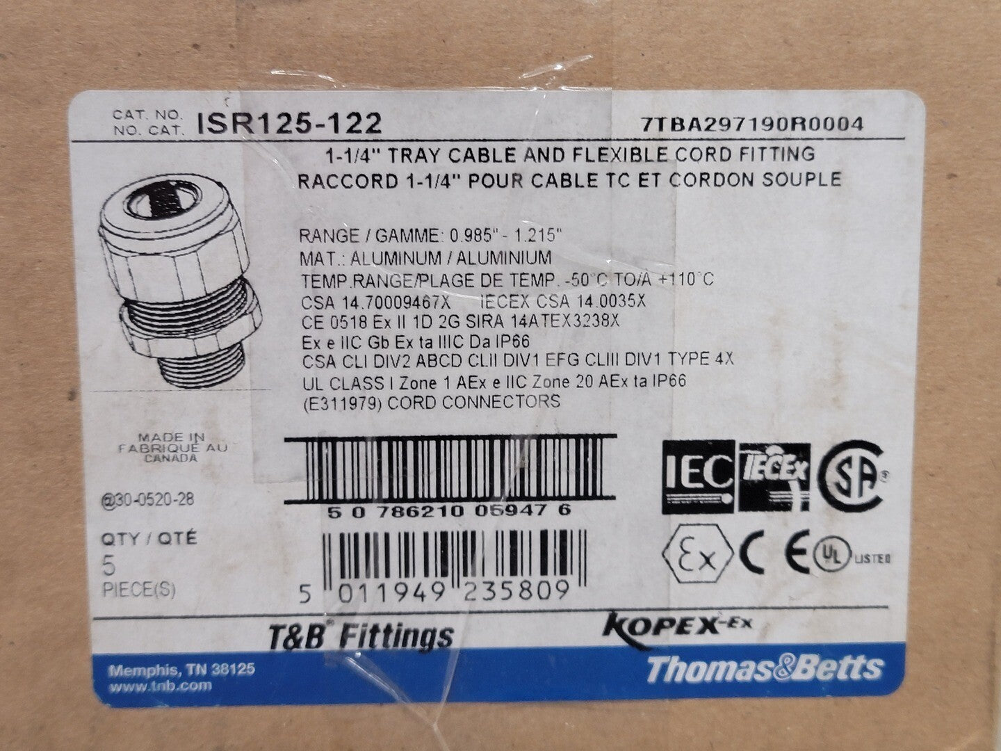 1-1/4" Tray Cable and Flexible Cord Fitting ISR125-122 (Box of 5)