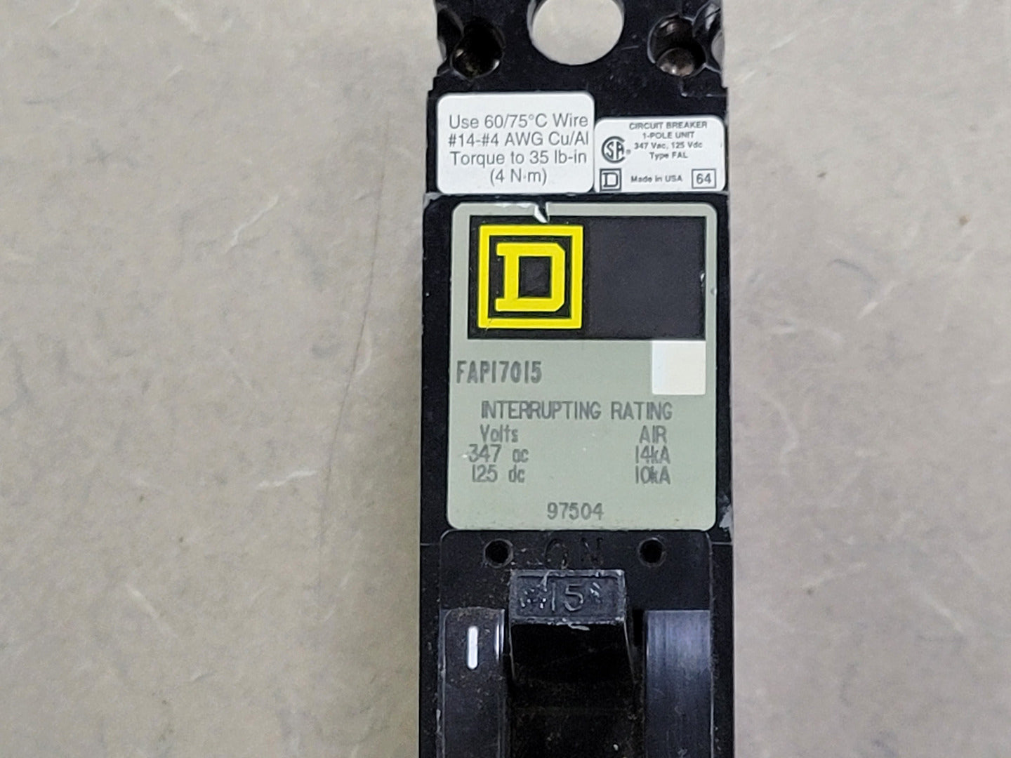 15 Amp, 1 Pole, 347 Volts Circuit Breaker FAP17015