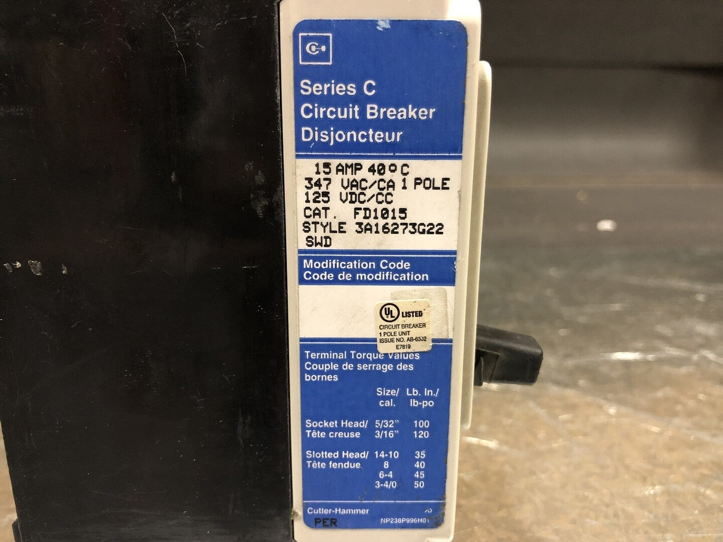 15 Amp, 1 Pole, 347 volts Circuit Breaker FD1015