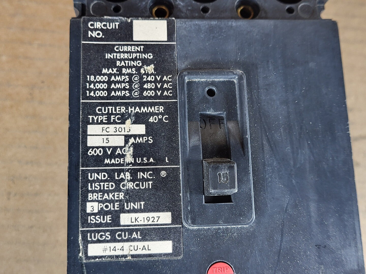 15 Amp, 3 Pole, 600 Volts Circuit Breaker FC3015