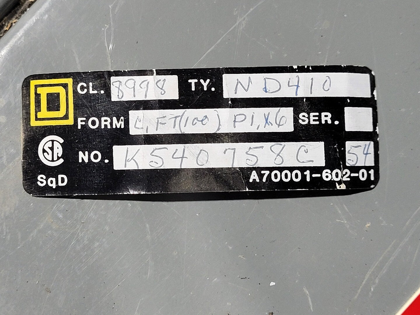 25 hp, 600 Volt Starter 8536SD01 Bucket for MCC Frame 8998 ND410