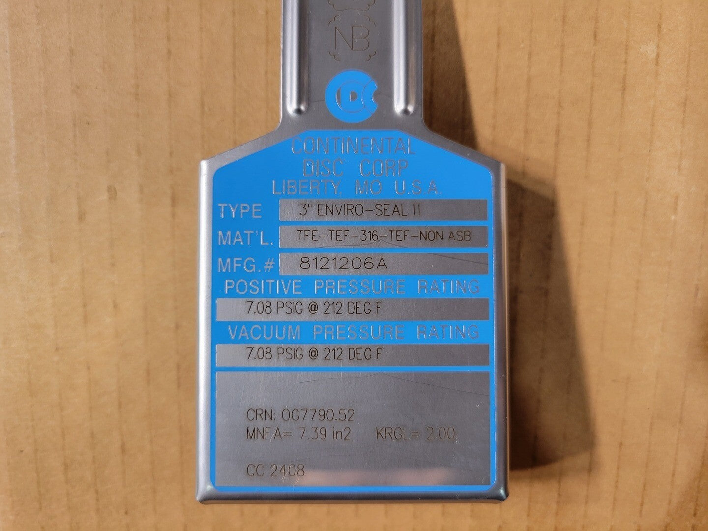 3" ENVIRO-SEAL II Rupture Disc 8121206A