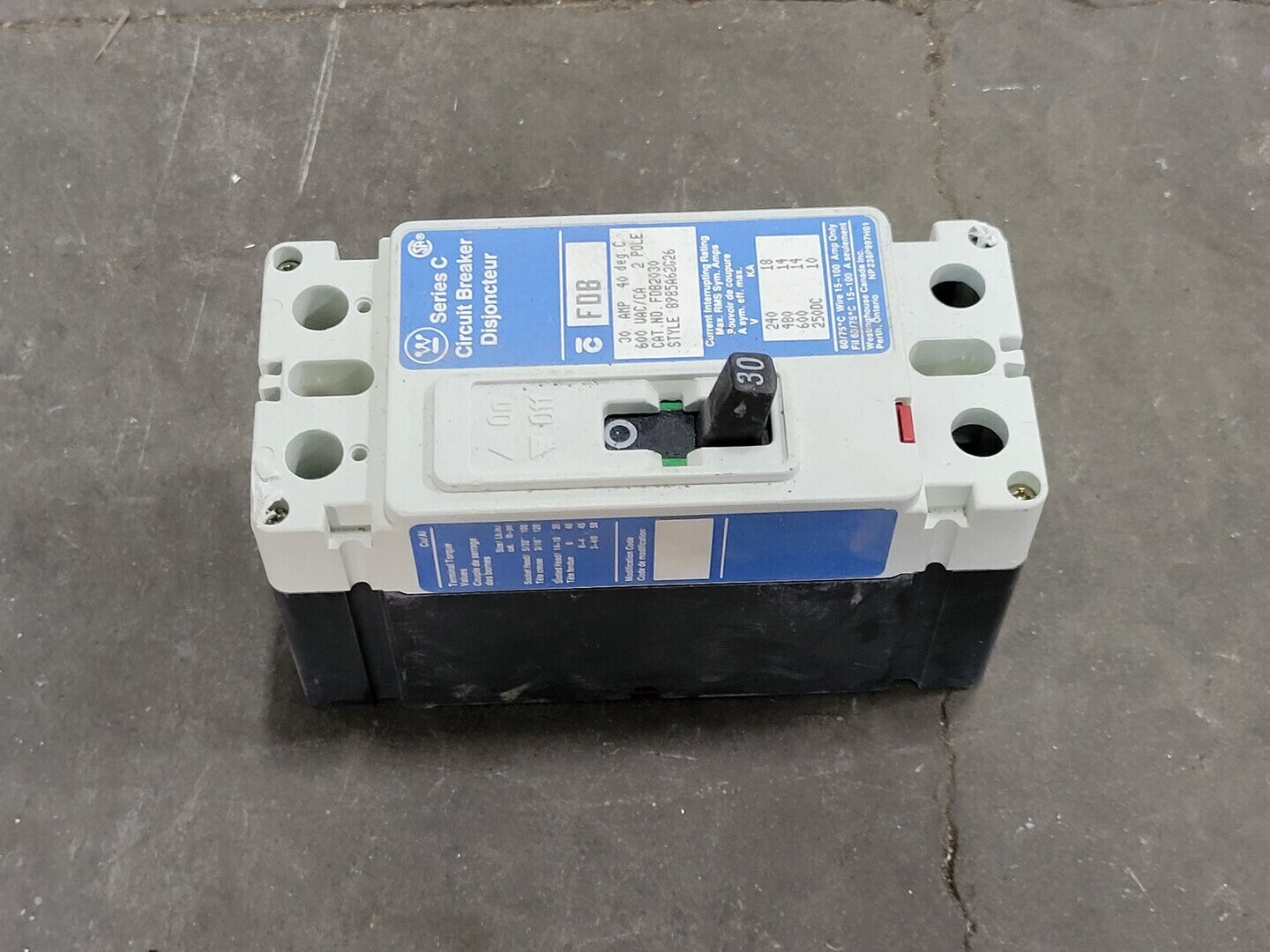 30 Amp, 2 Pole, 600 Volts Circuit Breaker FDB2030