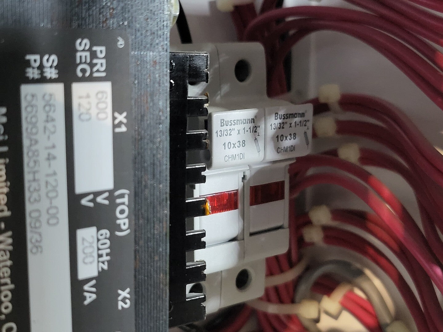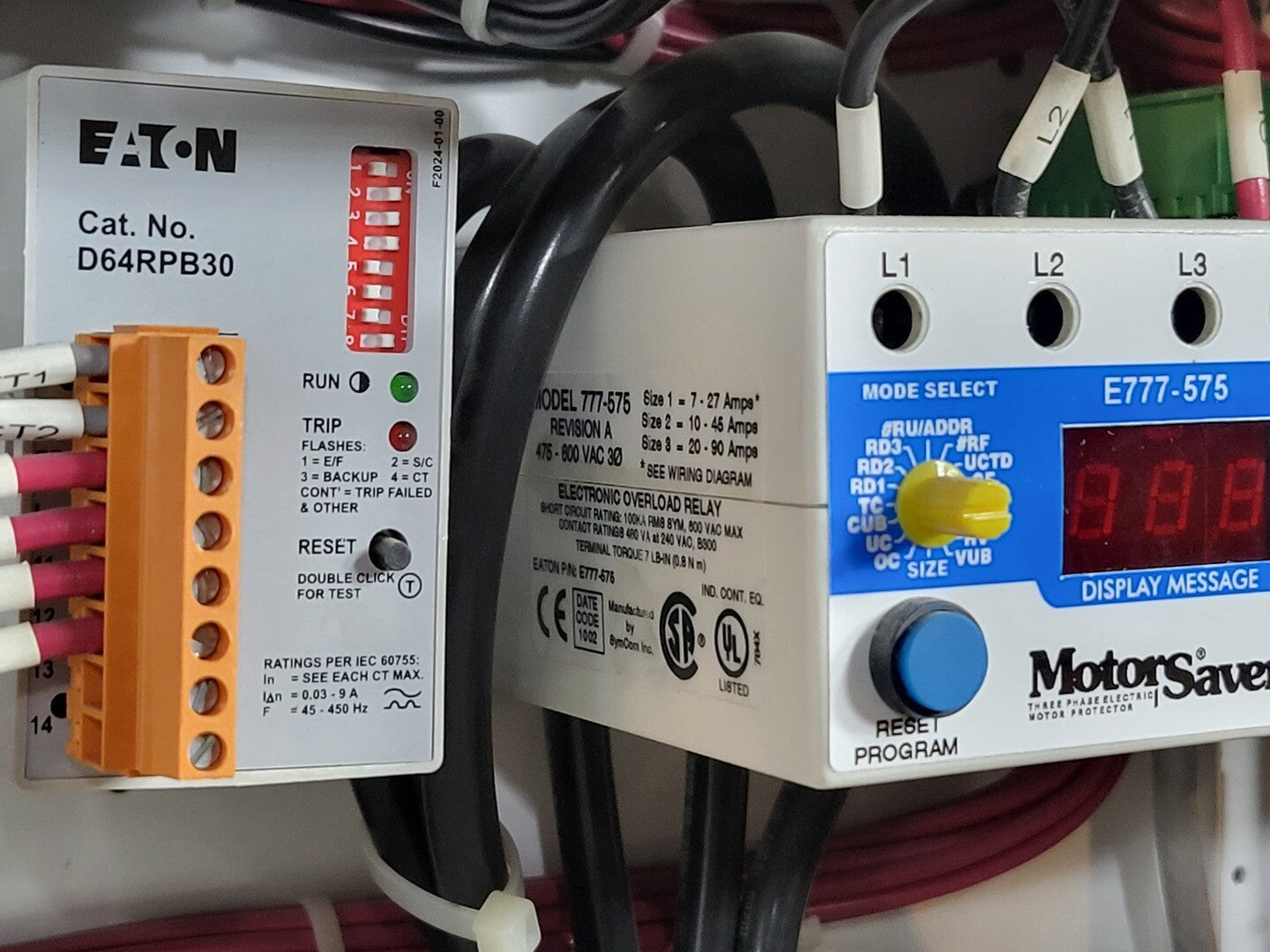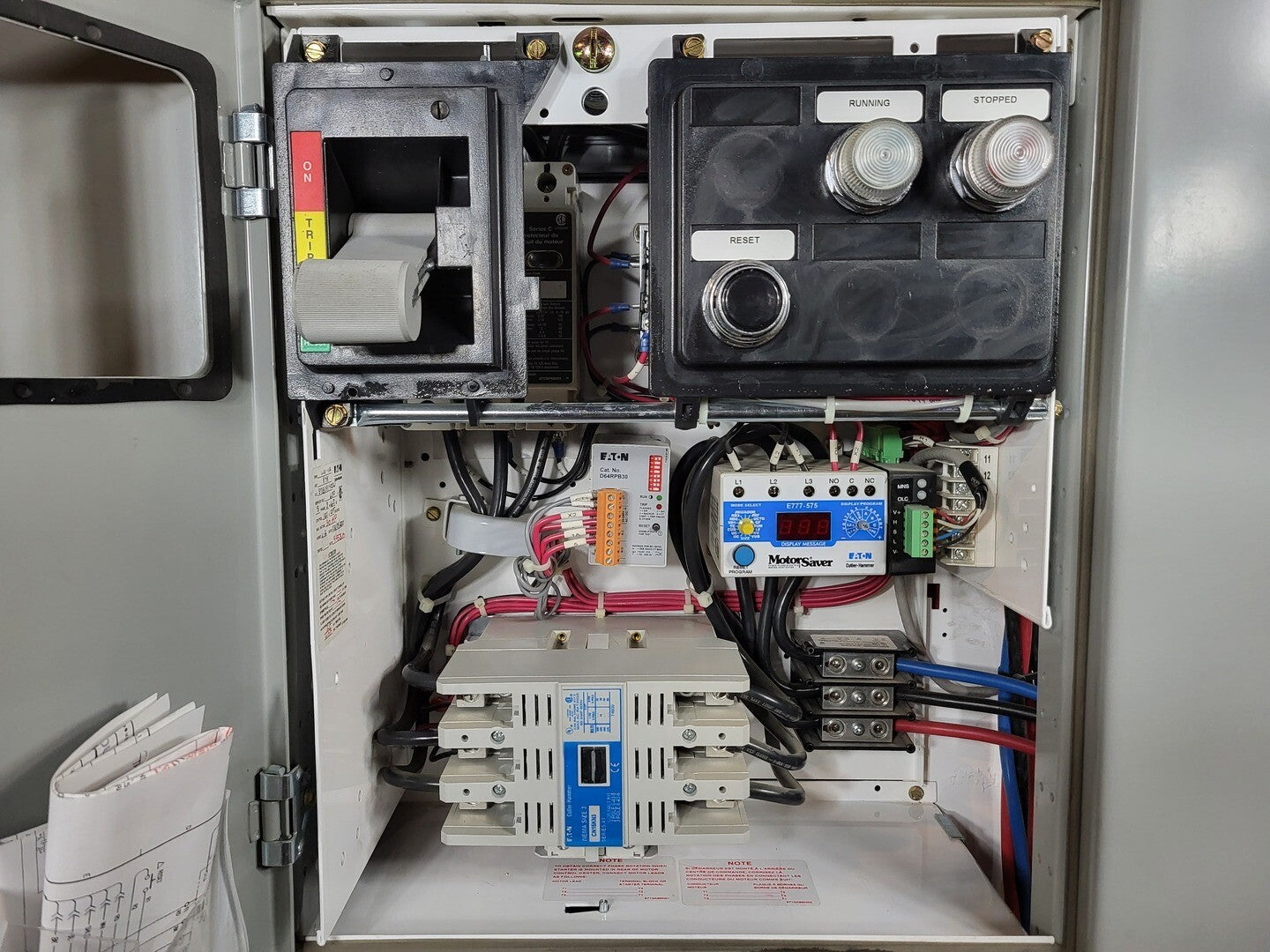 Circuit Breaker Maker: Eaton Model: HMCP Voltage: 600V Amps: 100 amps Poles: 3 Ground Fault Relay Maker: Eaton Model: D64RPB30 Overload relay: 24-240 Vac/dc Motor Saver Electronic Overload Relay Maker: Eaton Model: E777-575 Voltage: 450-600VAC Phase: 3 Transformer Maker: MCi Model: 5642-14-120-00 VA: 200VA Primary: 600V Secondary: 120V Contactor Maker: Eaton Model: CN15KN3 Amp: 90 Size: NEMA 3 |