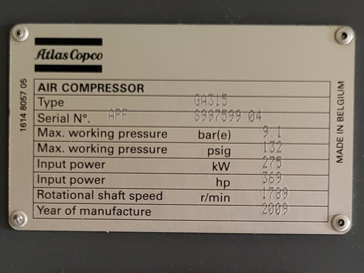 | Compressor Air Type | Rotary Screw |
