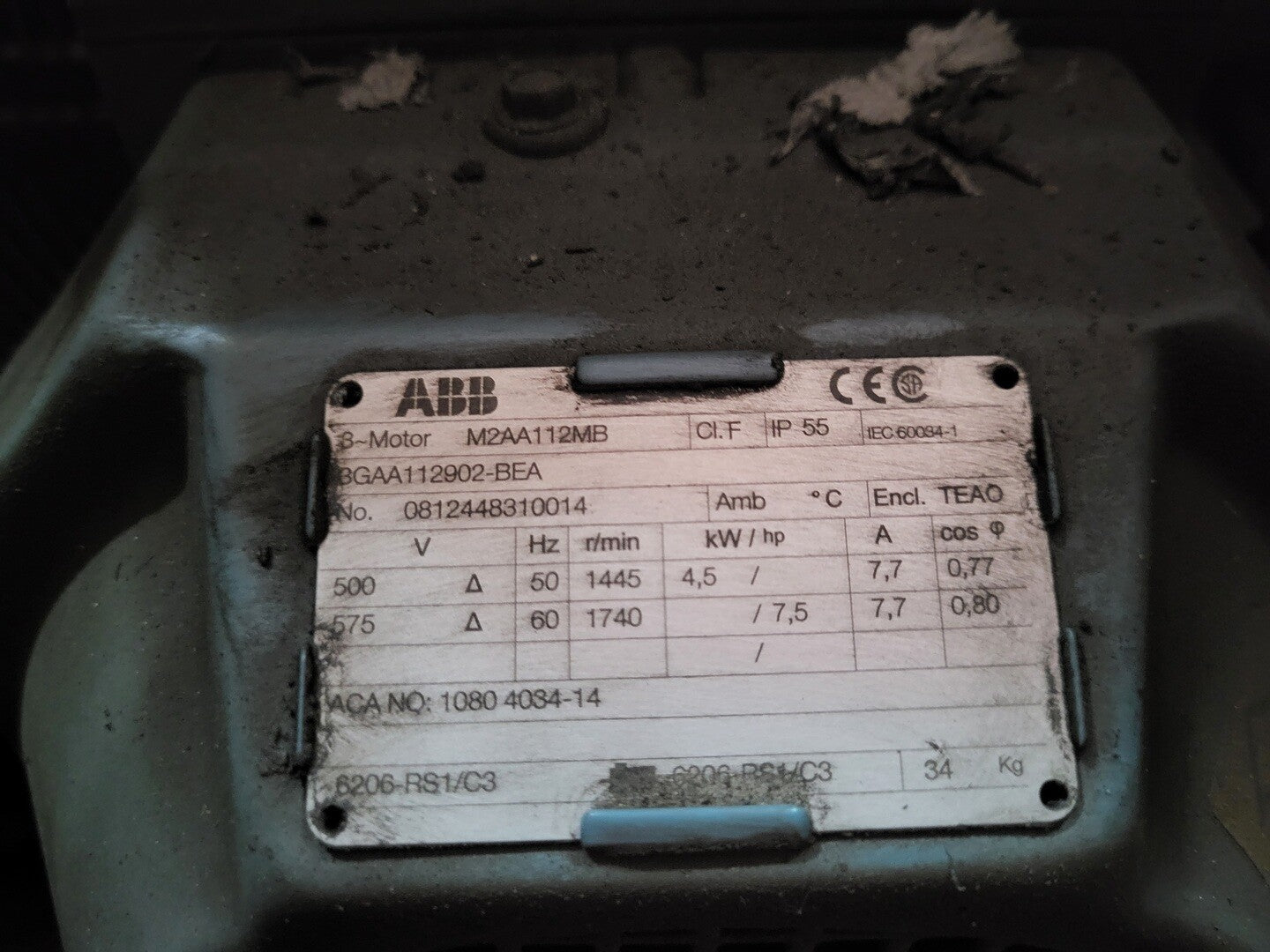 Rotational shaft speed: 1789 rpm Control cubicle & fan voltage: 575 volts |