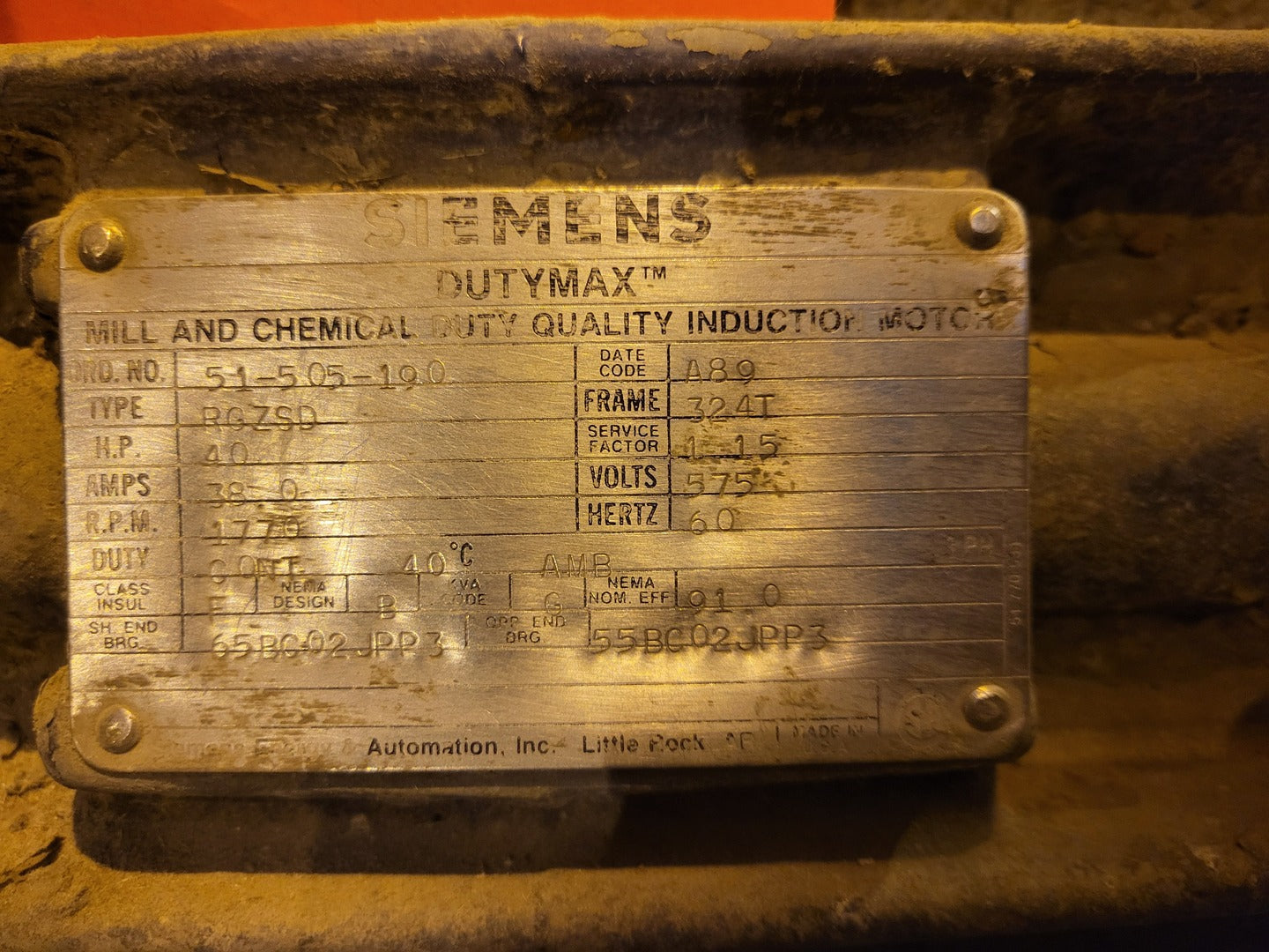 Type: RGZSD Amps: 38.0 Service Factor: 1.15 Insulation Class: F NEMA Design: B |