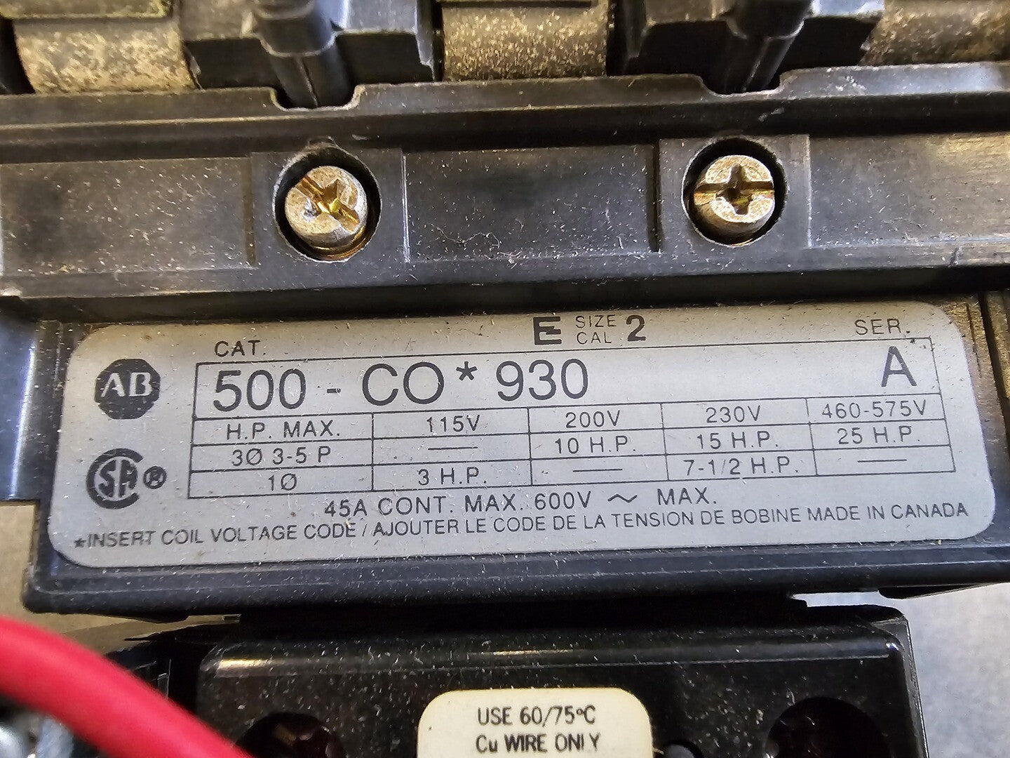 45 Amp, 600V NEMA Size 2 Open Contactor 500-COD930