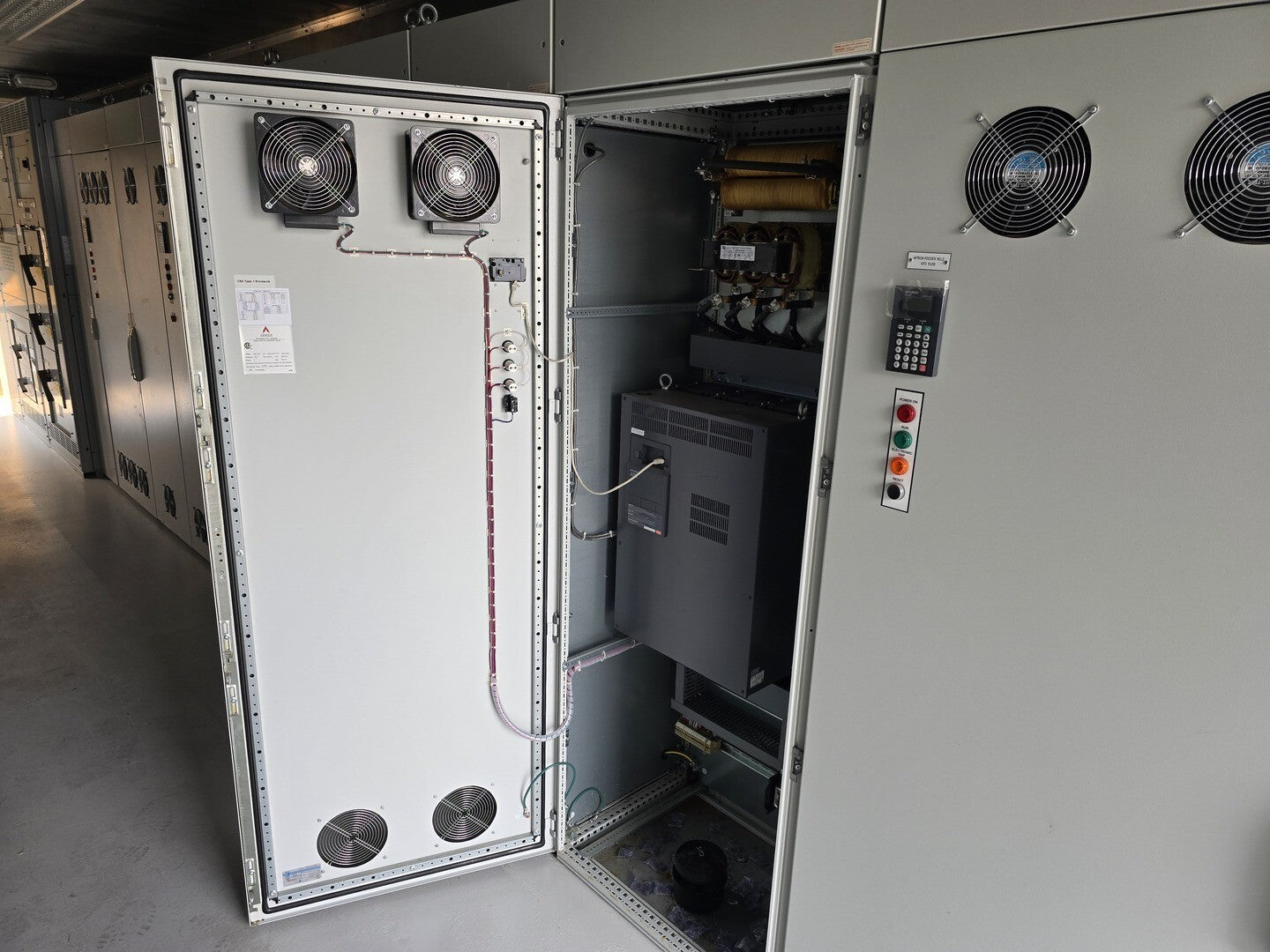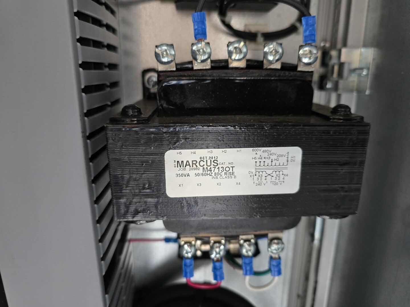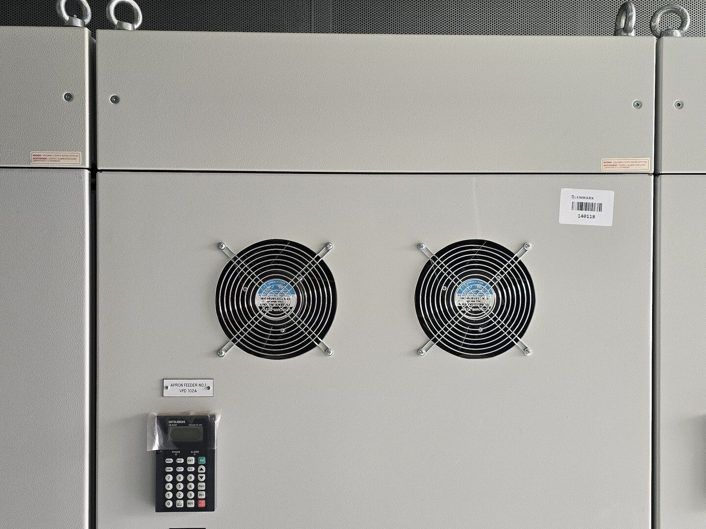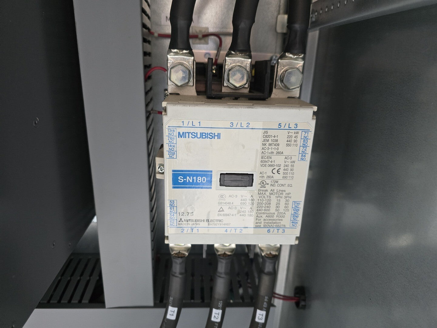 Magnetic Contactor Maker: Mitsubishi Model: S-N180 Frame Size: 180 Current Type: AC TYPE Coil Voltage (V): 200-240 Rated Current (A): 3-PHASE AC690V: 120 Rated Voltage (V): 690 Number of Poles: 3 Transformer Maker: Marcus Model: M4713OT VA: 350VA Reactor Maker: HPS Model: RM0160P23 Amps: 160A VFD Maker: Mitsubishi Model: FR-A740-02160-NA Series: A700 |