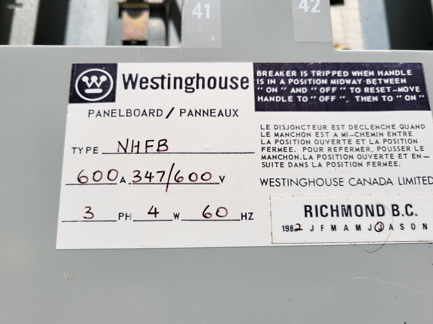 600 Amp, 600V, 3Ph, 4W, 42 Circuits Panelboard Type NHFB