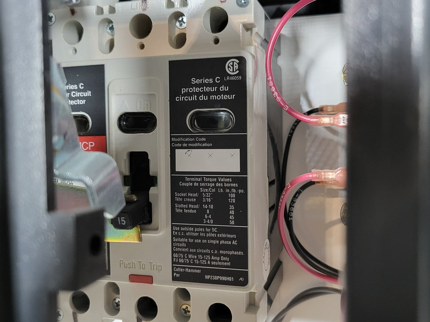 **Fits 2100 MCC Frame Circuit Breaker Maker: Eaton Model: HMCP Voltage: 600V Amps: 15 amps Poles: 3 Ground Fault Relay Maker: Eaton Model: D64RPB30 Overload relay: 24-240 Vac/dc Motor Saver Electronic Overload Relay Maker: Eaton Model: E777-575 Voltage: 450-600VAC Phase: 3 Transformer Maker: MCi Model: 5576-14-120-00 VA: 150VA Primary: 600V Secondary: 120V Devicenet Module Maker: Eaton Model: EC10-120-DN Inputs: 115VAC Contactor Maker: Eaton Model: CN15DN3 Amp: 27 Size: NEMA 1 |