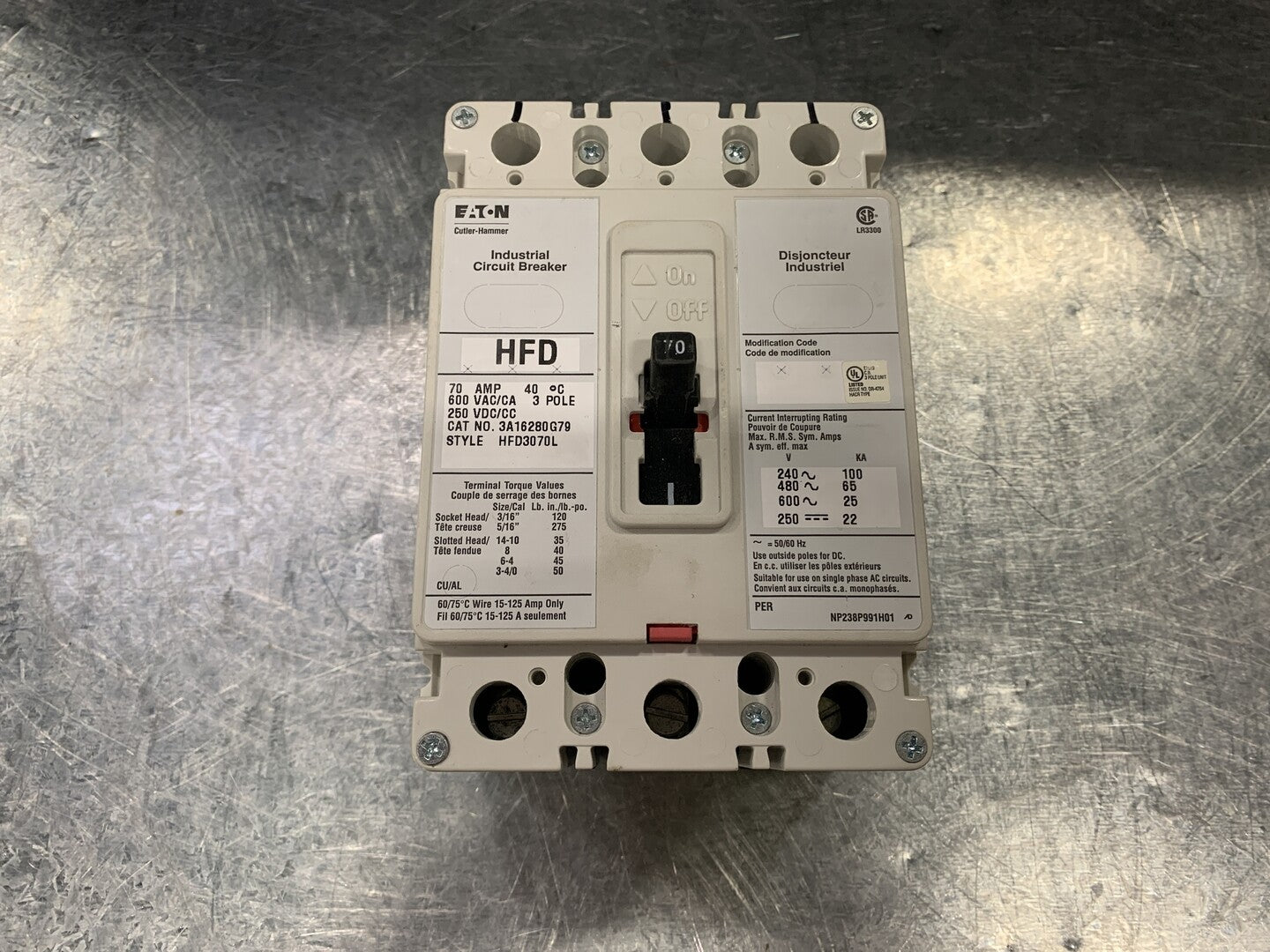 70 Amp, 3 Pole, 600 Volts Circuit Breaker HFD3070L