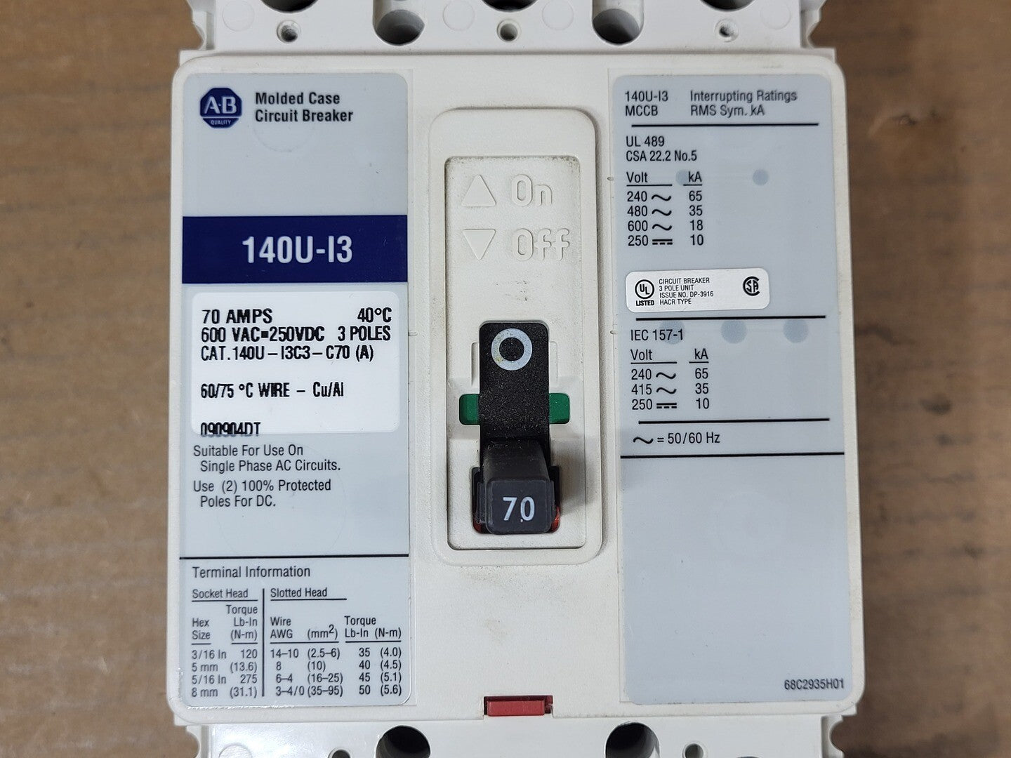 70 Amp, 3 Poles, 600 Volts Circuit Breaker 140U-I3C3-C70 w/ Limiter 140U-I-CLC70