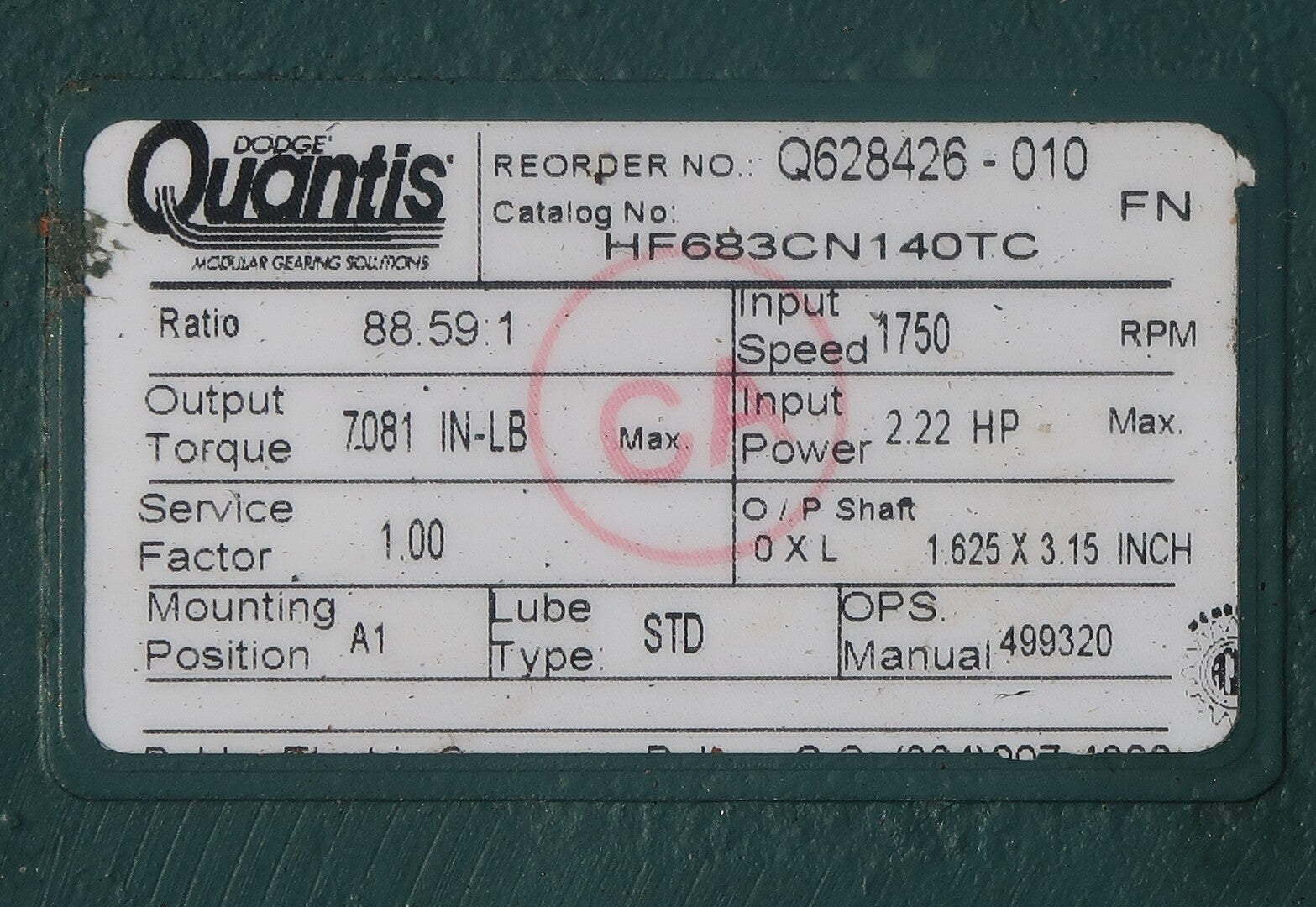 | Output Shaft Size | 1.62" x 3.15" |