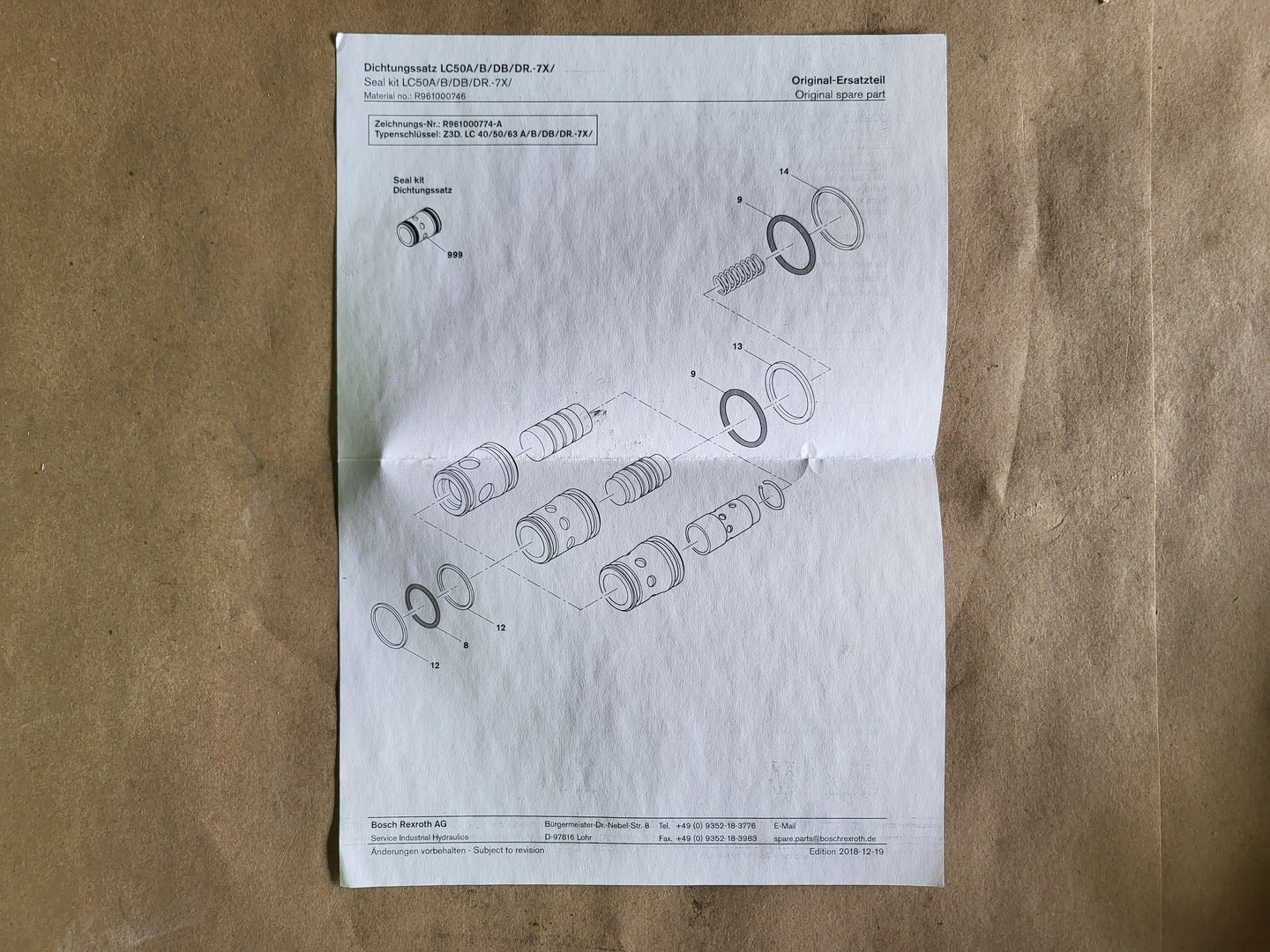 Cartridge Valve Seal Kit LC50, R961000746