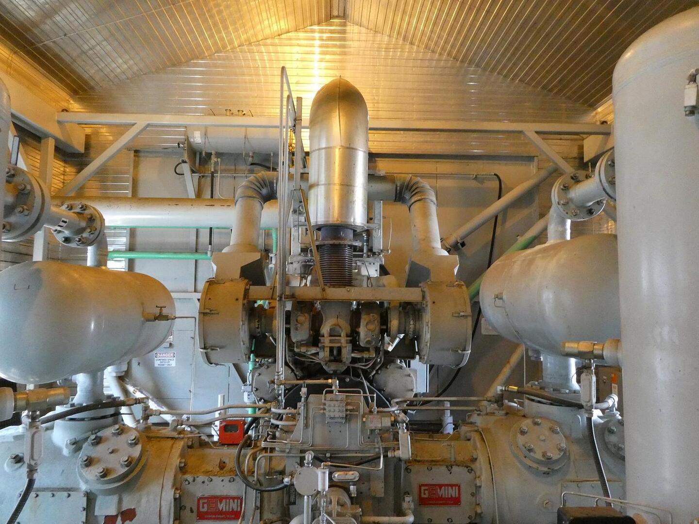 Compressor: GEMINI COMPRESSORS - D602 2-Stage Reciprocating Compressor, Ser. D263 Engine: CATERPILLAR - G3512LE 810HP, 1200RPM Industrial Natural Gas Engine, Ser. 7NJ00930 Fuel Gas Filter: ENERGY INDUSTRIES - Fuel Gas Filter, Ser. STK397LEF Cooler: AXH EF120 Engine-Driven Cooler Compressor 1st Stage: