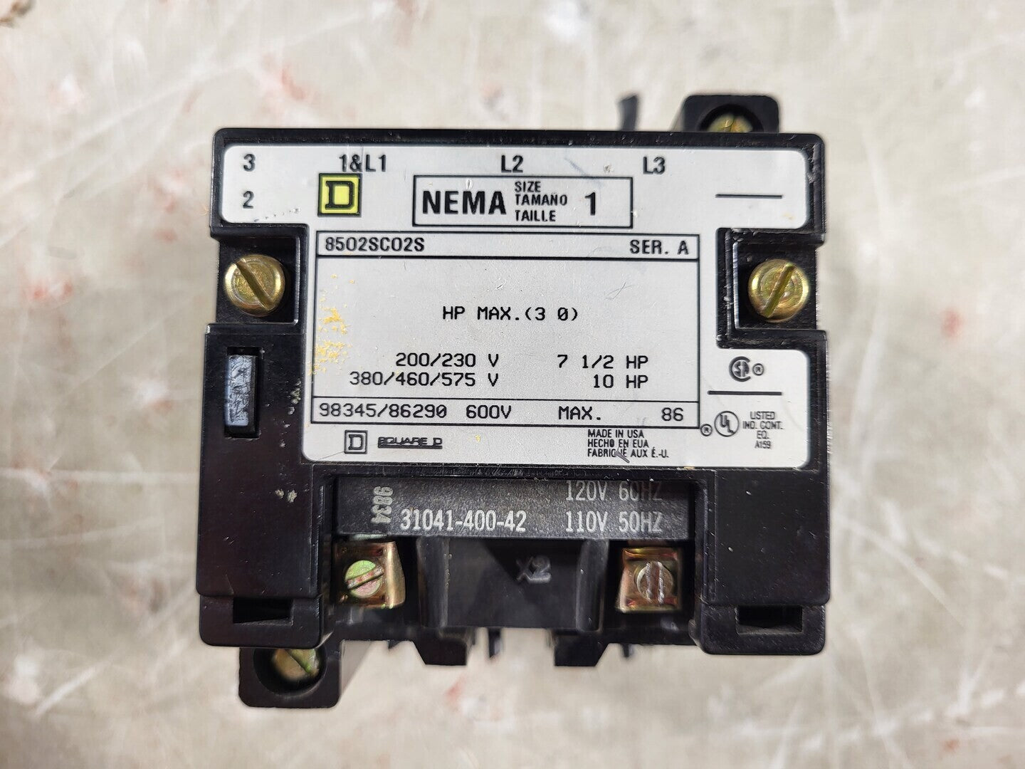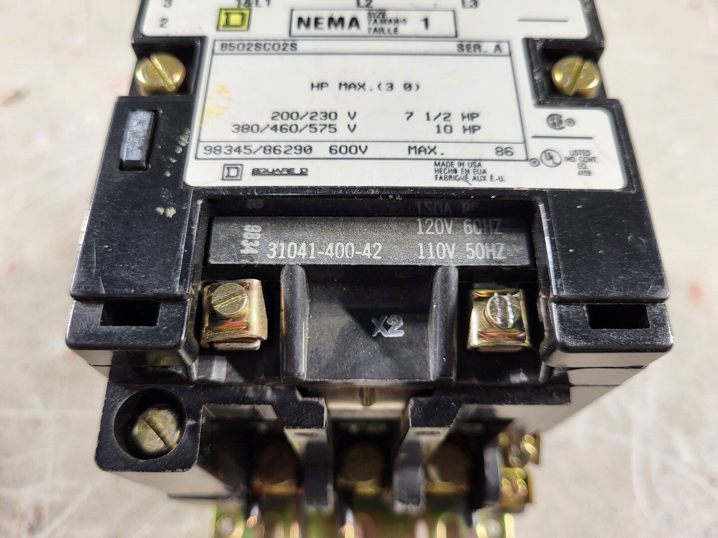 27 Amp, 3 Pole, 1 NO, 110/120 VAC Coil Contactor 8502SC02S