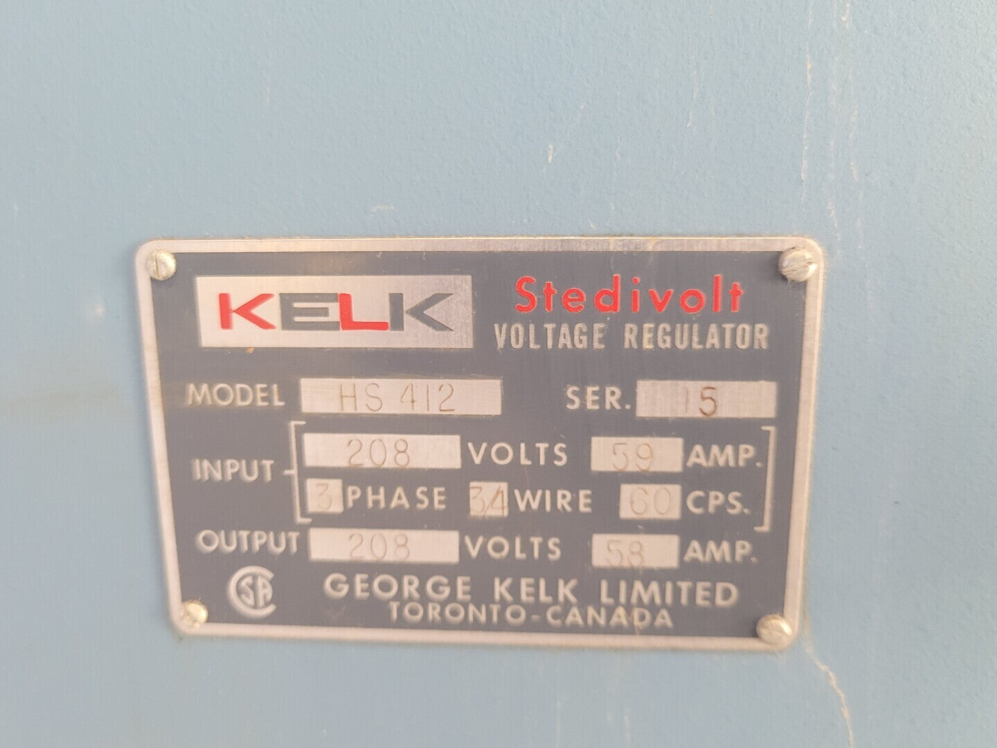Input: 208 volts, 59 amps, 3 phase, 3/4 wire, 60 cps