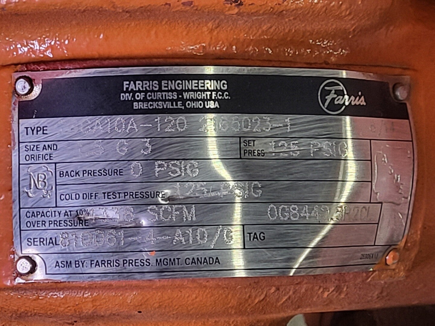Cold Set Pressure: 125 psig