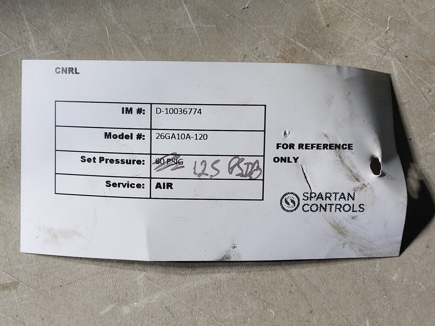 Set Pressure: 125 psig