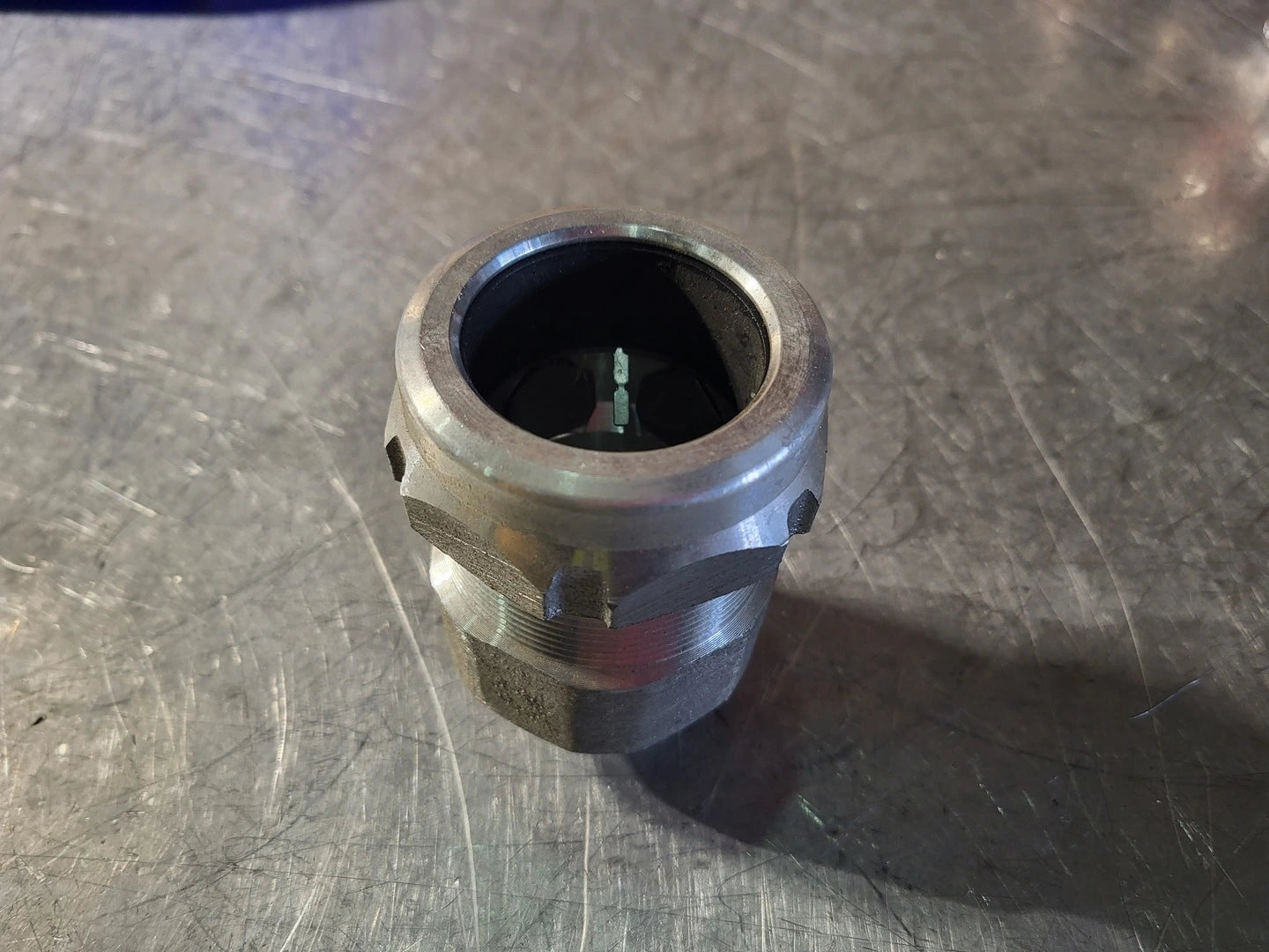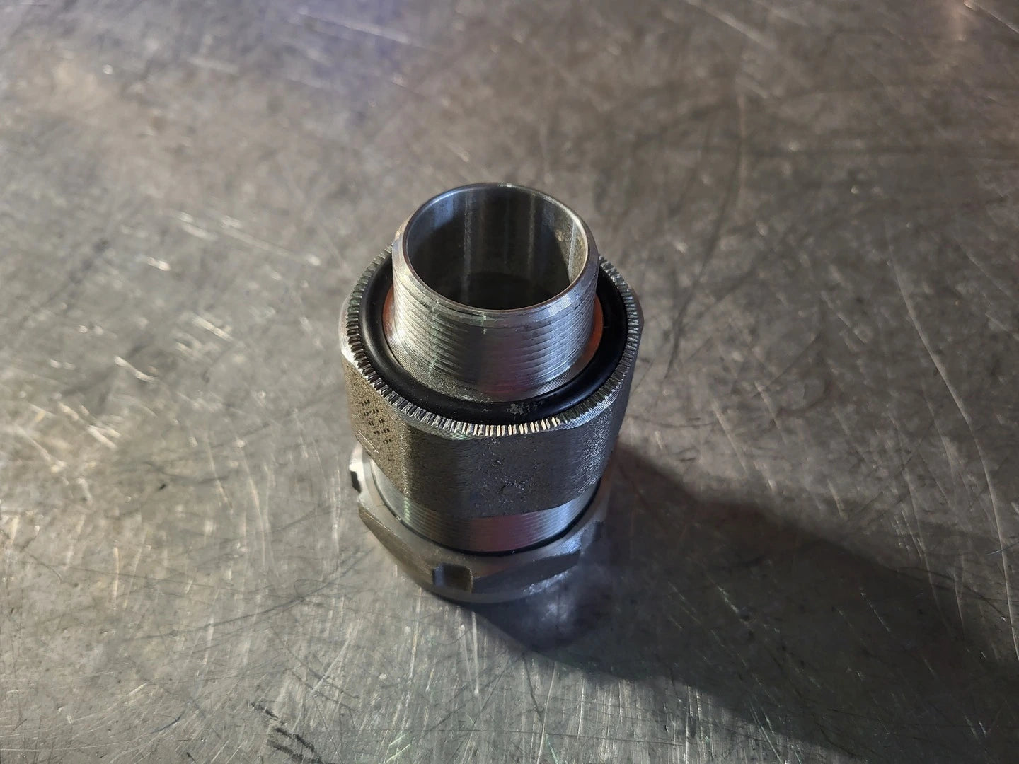 Star Teck aluminum jacketed cable fitting. Hub size of 1-1/4 inch. Range over jacket from 1.600 - 1.875 inch.