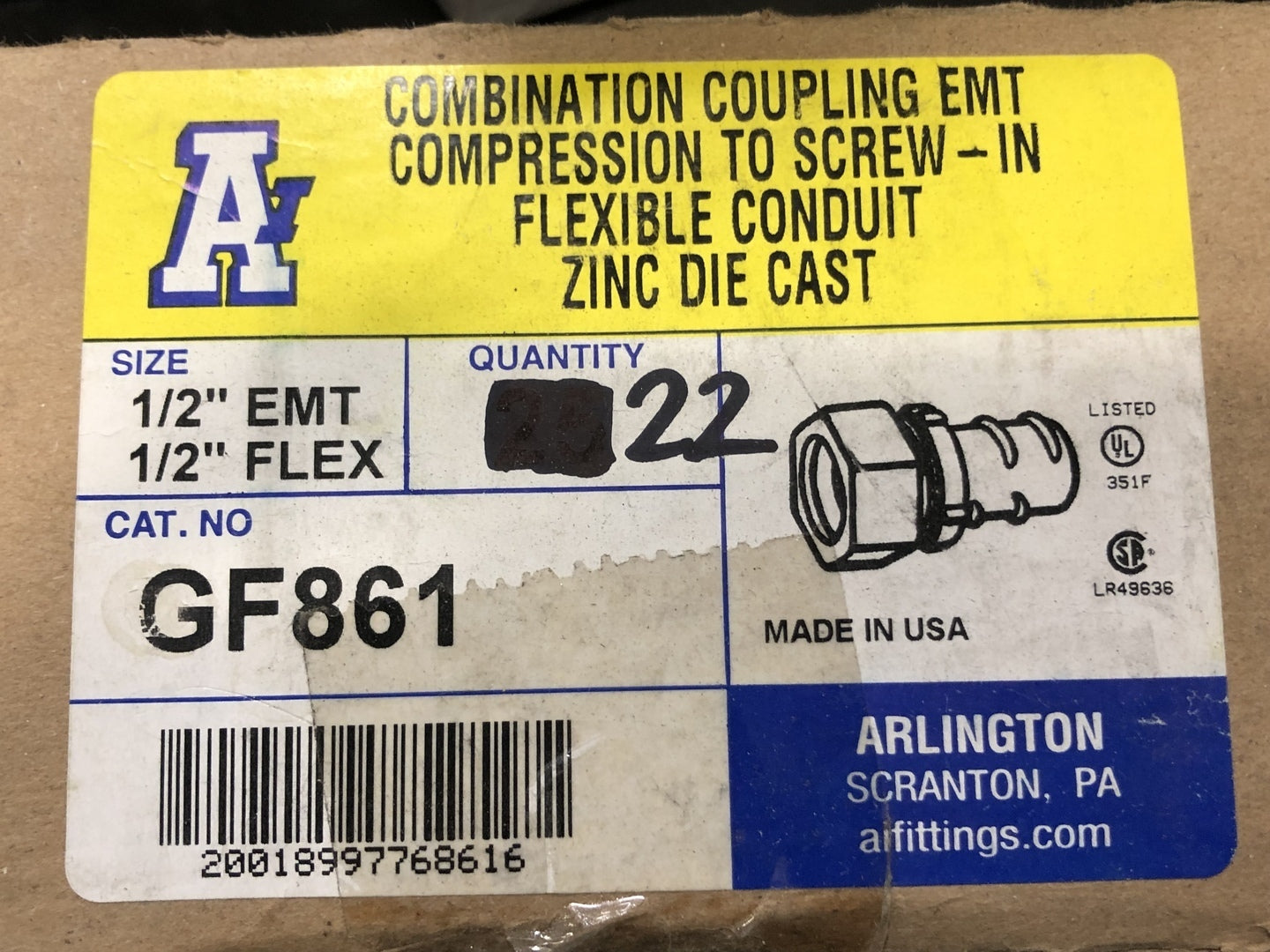 1/2" Combination Coupling EMT to Flex GF861 (Box of 20)