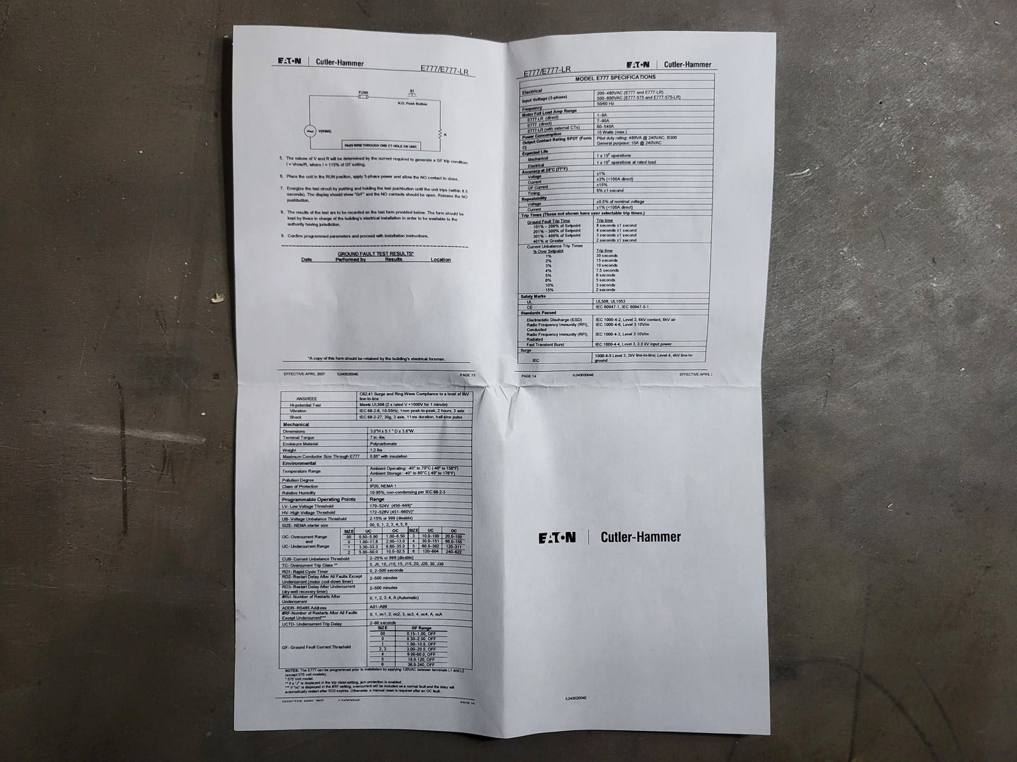 **Fits 2100 MCC Frame Circuit Breaker Maker: Eaton Model: HMCP Voltage: 600V Amps: 7 amps Poles: 3 Ground Fault Relay Maker: Eaton Model: D64RPB30 Overload relay: 24-240 Vac/dc Motor Saver Electronic Overload Relay Maker: Eaton Model: E777-575-LR Voltage: 450-600VAC Phase: 3 Transformer Maker: MCi Model: 5576-14-120-00 VA: 150VA Primary: 600V Secondary: 120V Devicenet Module Maker: Eaton Model: ECIO-120-DN Inputs: 115VAC Contactor Maker: Eaton Model: CN15DN3 Amp: 27 Size: NEMA 1 |