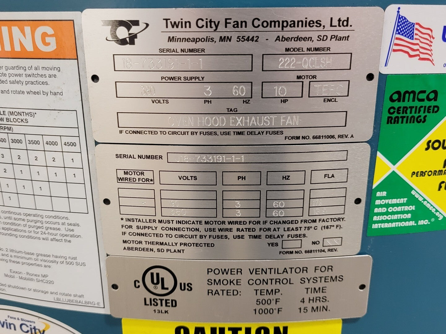 This product is a 10 horsepower Oven Hood Exhaust Fan with the model number 222-QCLSH. It has a fan size of 27 inches and operates at a speed of 1755 rpm. The voltage requirement for this fan is 380 volts, and it operates on a 3-phase system.